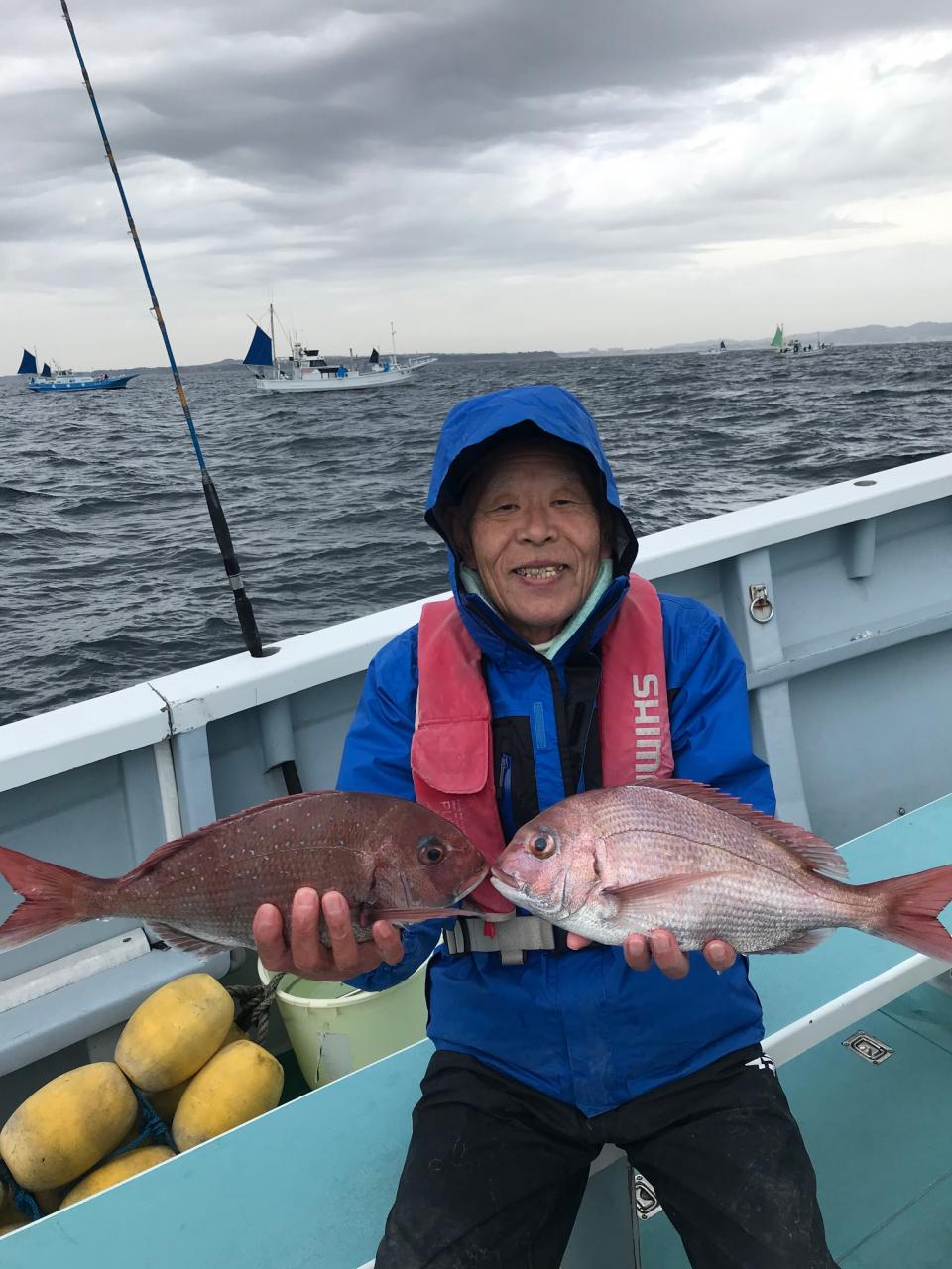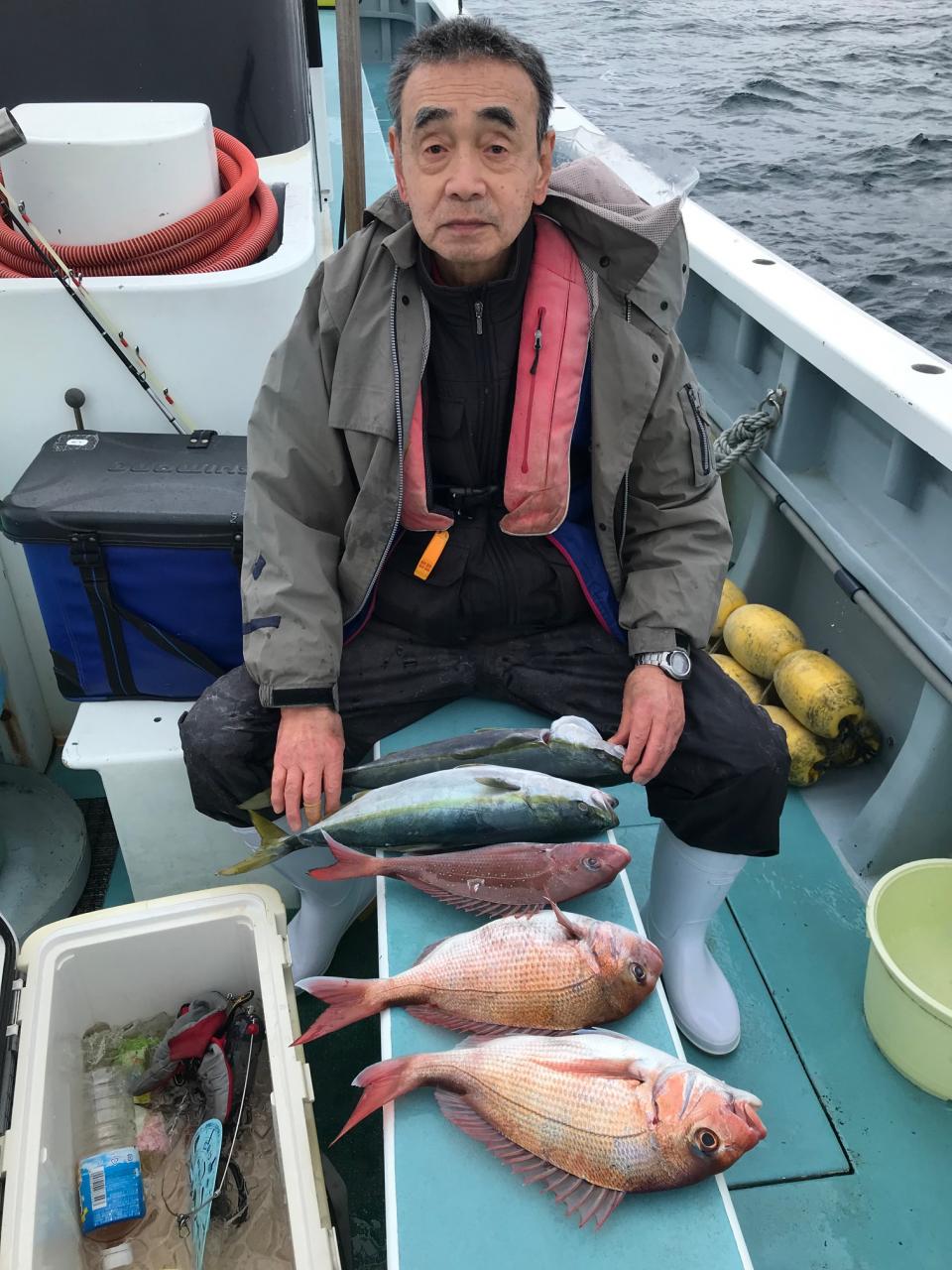 真鯛にイナダ交じる。今日はどうもありがとうございます。iPhoneから送信