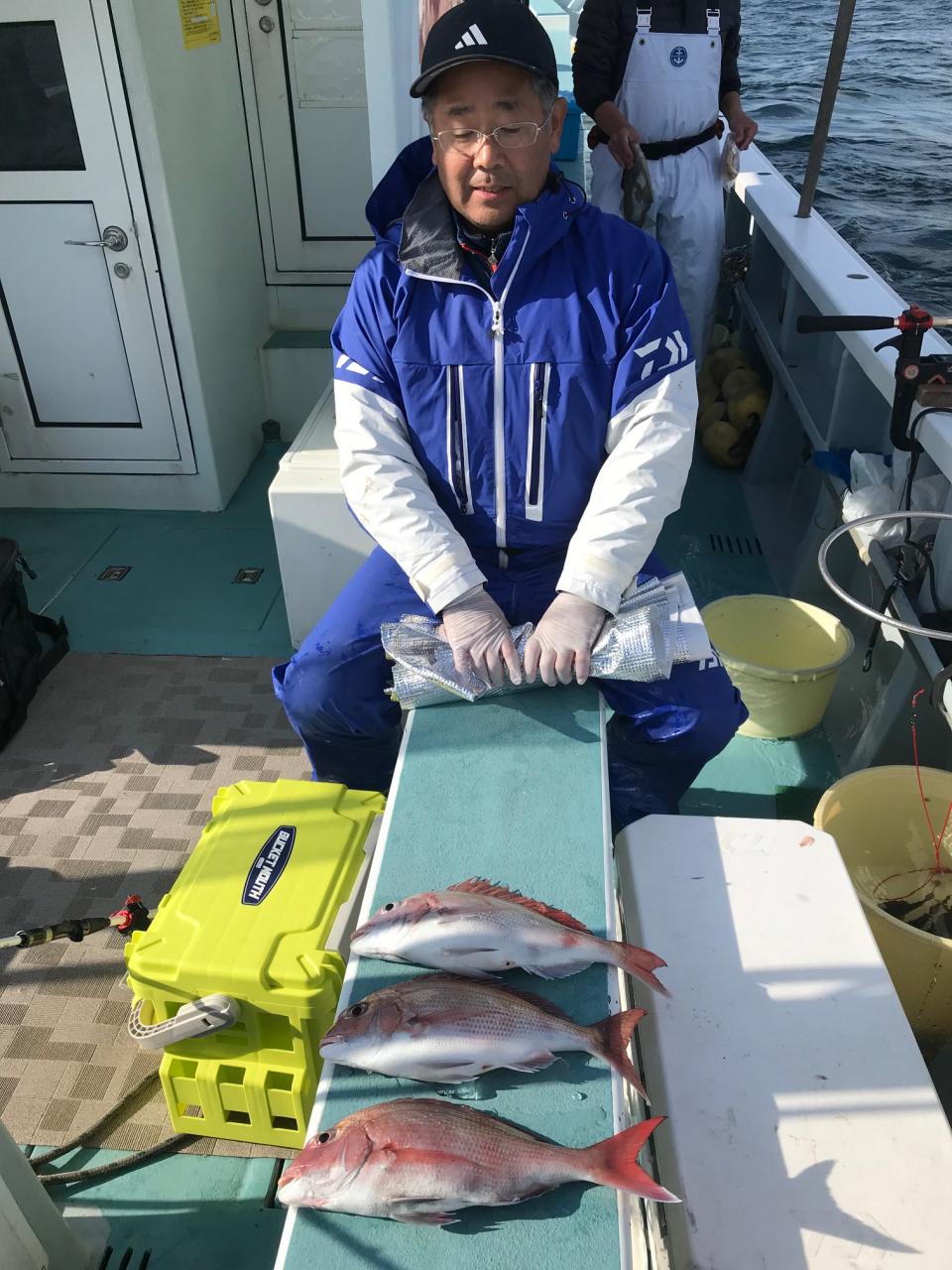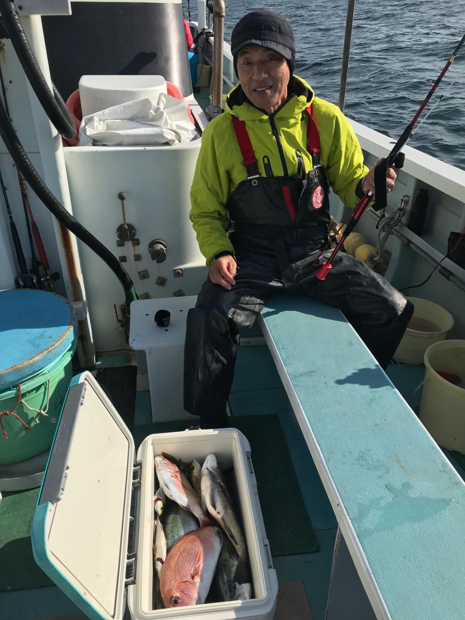 真鯛全員ゲット、トップ3枚ヒラソーダ交じる。シャクリ五目に黒鯛、イナダ、イサキ交じる。みなさん今日はどうもありがとうございました。iPhoneから送信