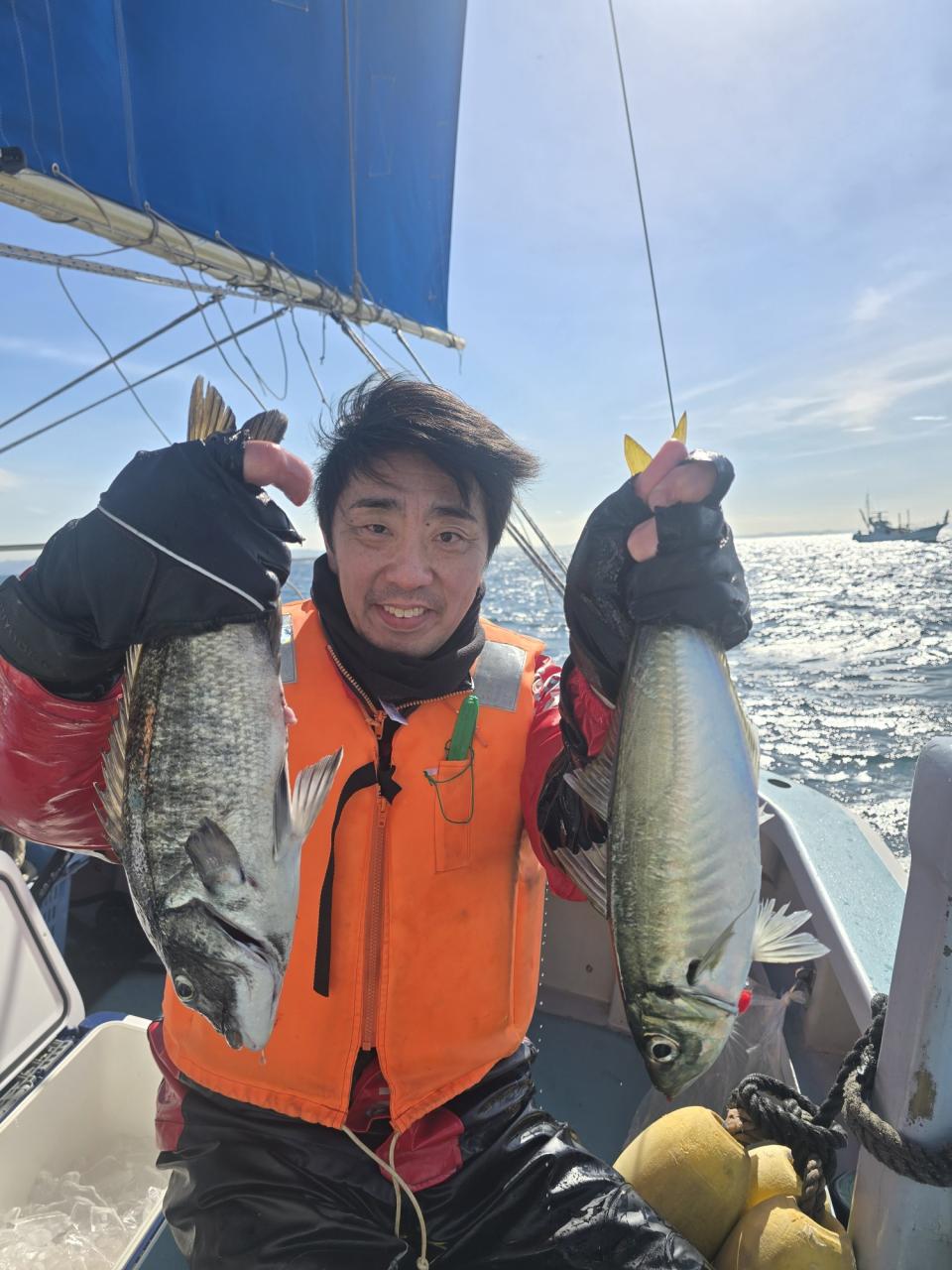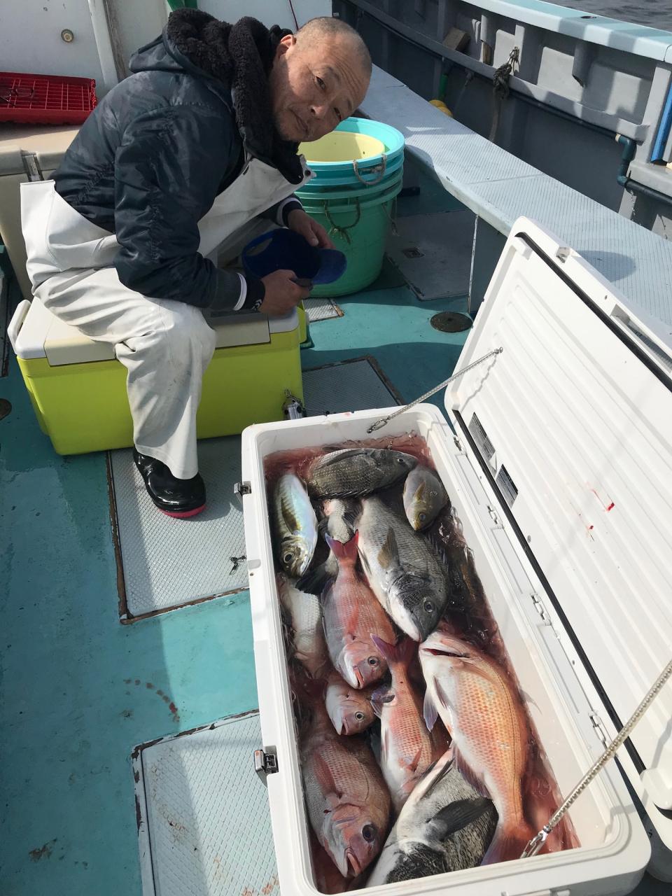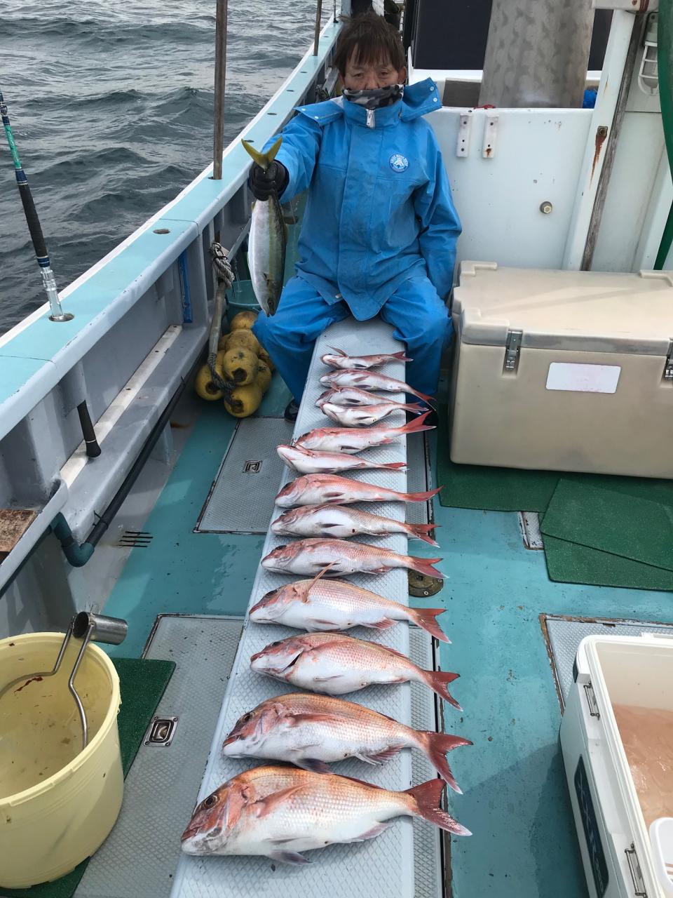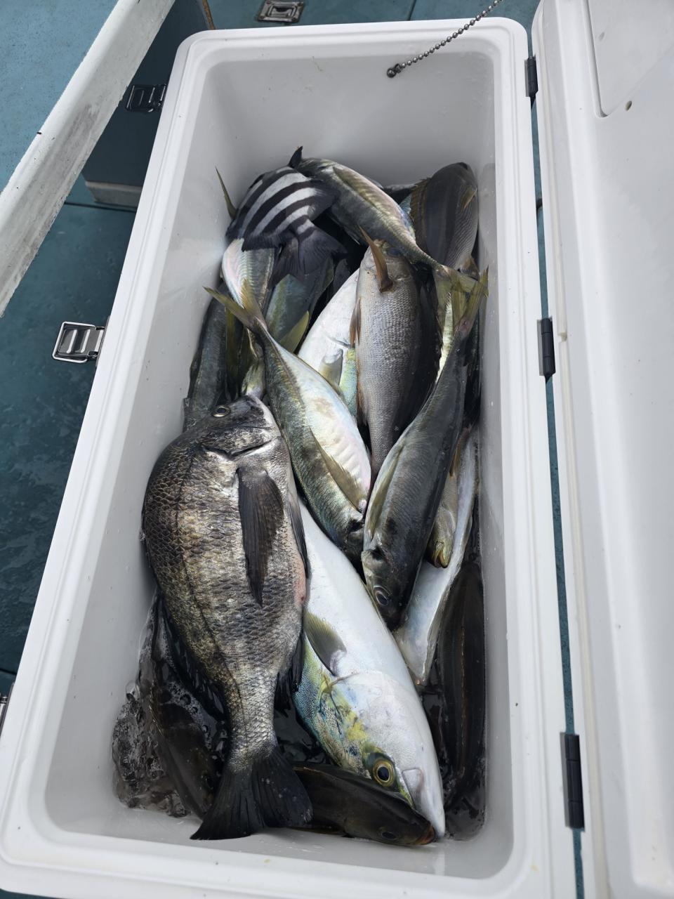 真鯛全員ゲット、トップ13枚黒鯛、イナダ交じる。みなさん今日はどうもありがとうございました。iPhoneから送信