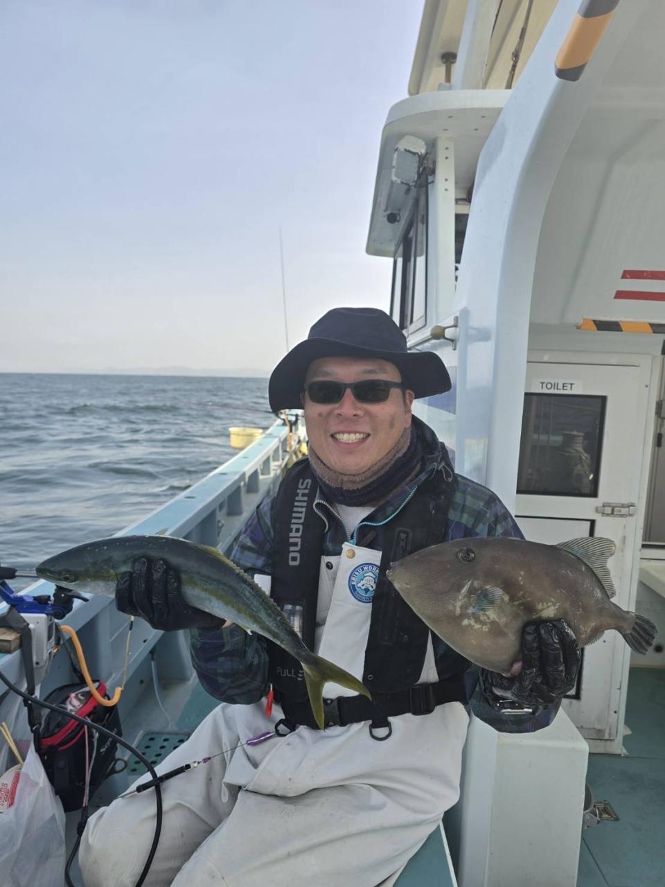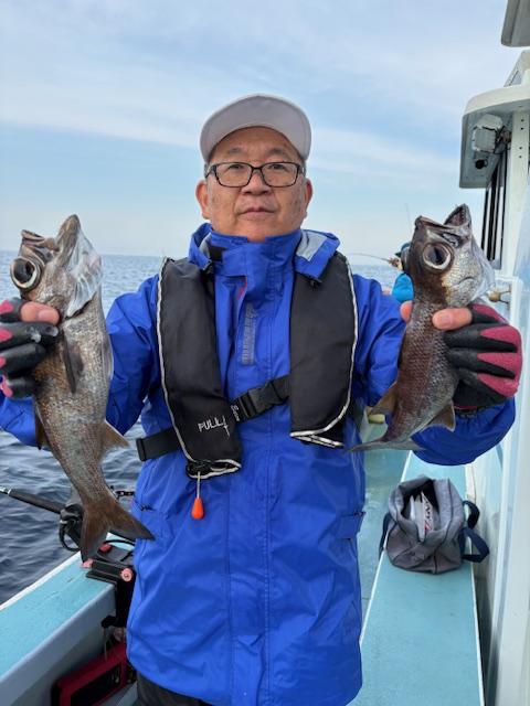 真鯛五目船真鯛全員ゲット、トップ6枚黒鯛、イサキ、鯵交じる。シャクリ五目船シマアジ、黒鯛、鯵、イサキ、イナダ、ウマズラハギ交じる。みなさん今日はどうもありがとうございました。iPhoneから送信