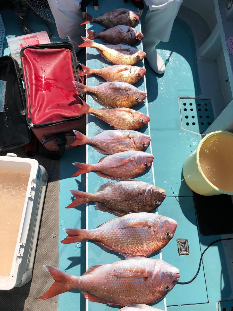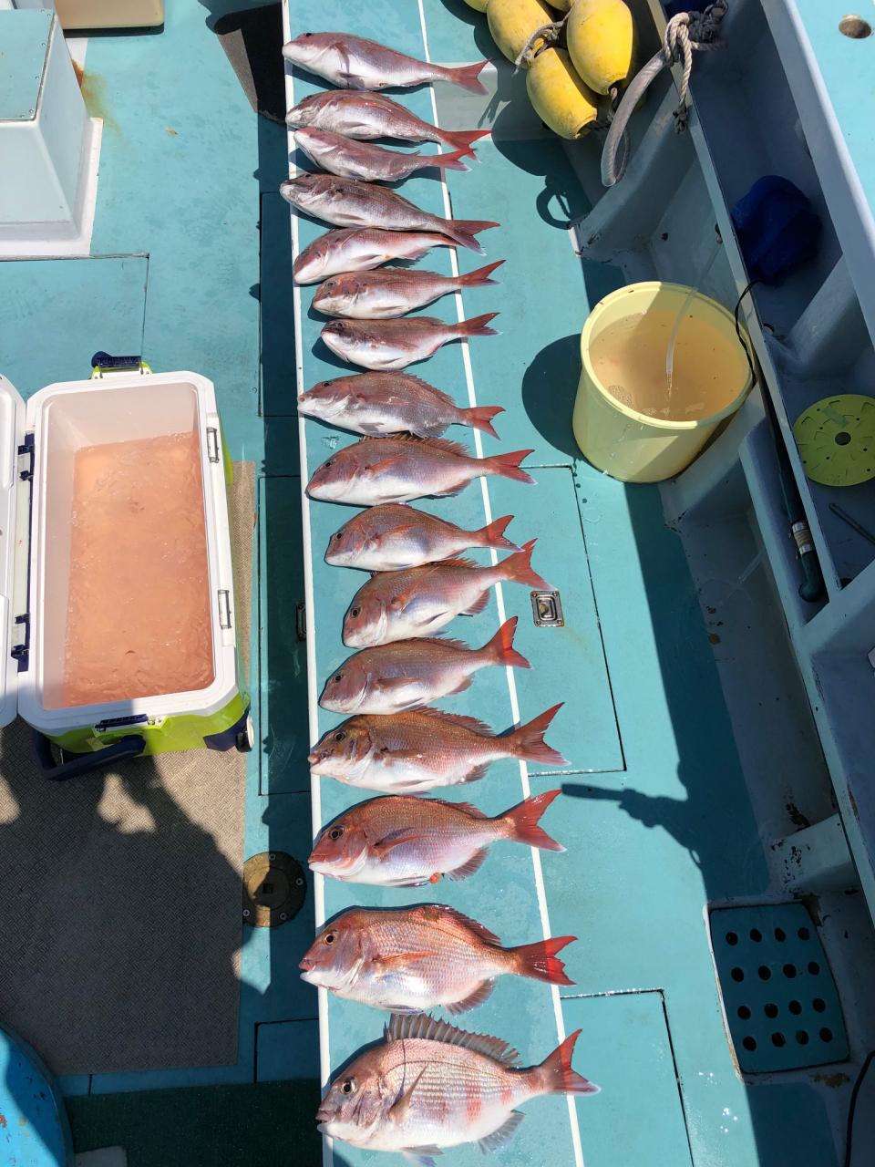 真鯛、3隻全員ゲット、トップ24、21枚好調、3隻合計170枚、今日はどうもありがとうございました。iPhoneから送信