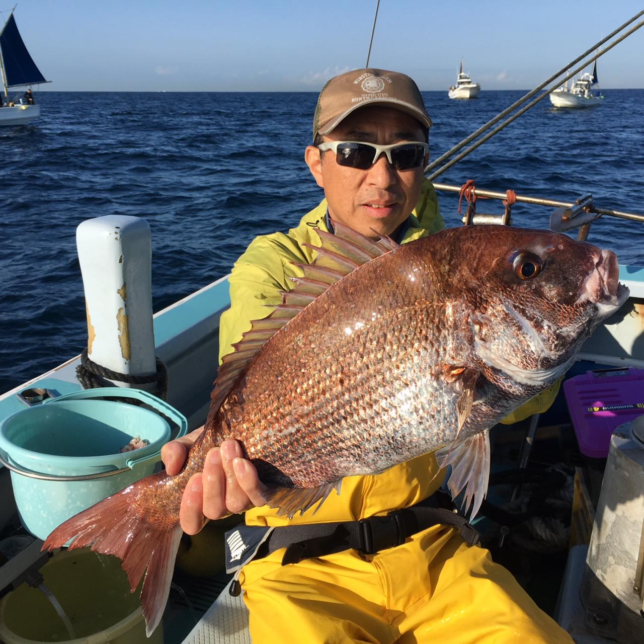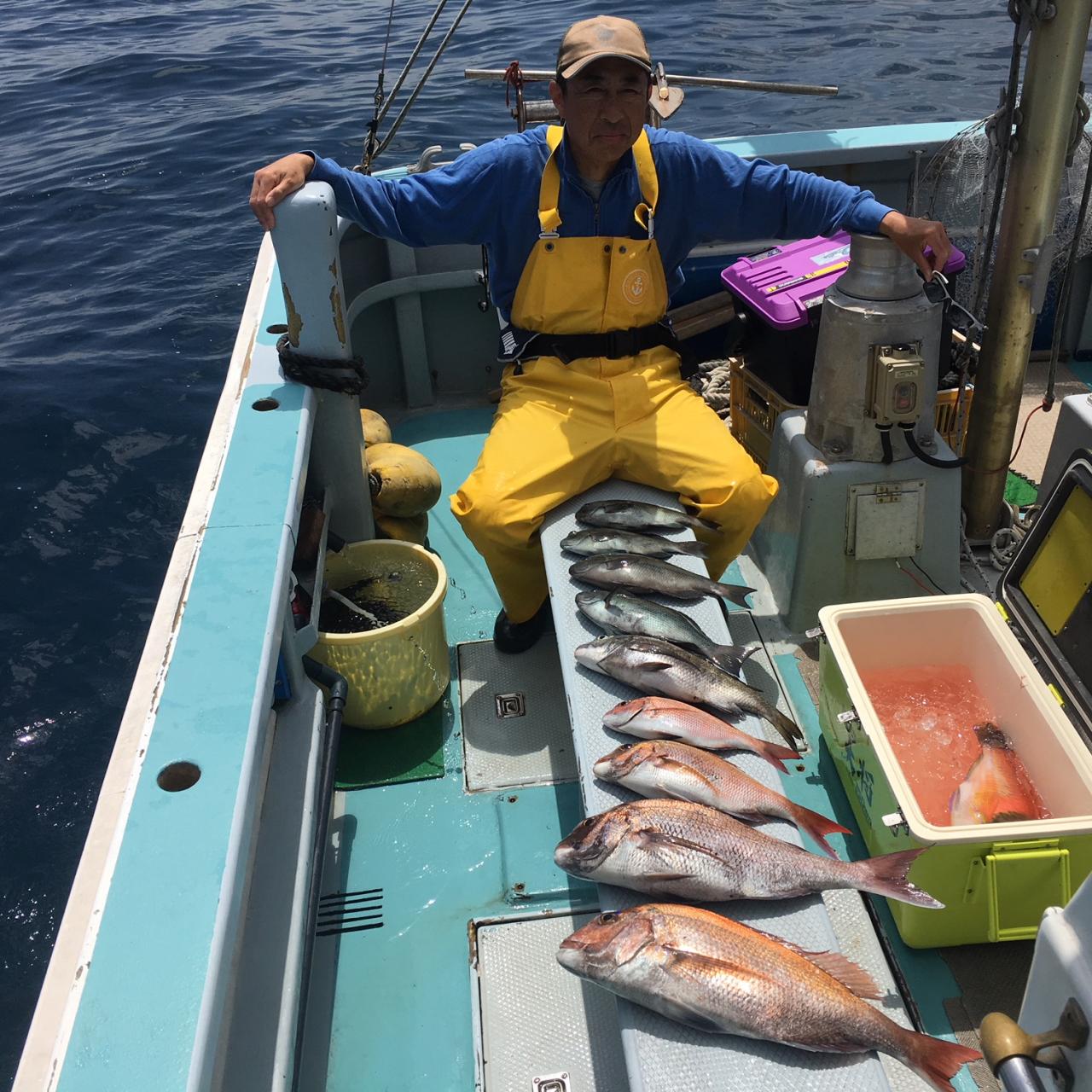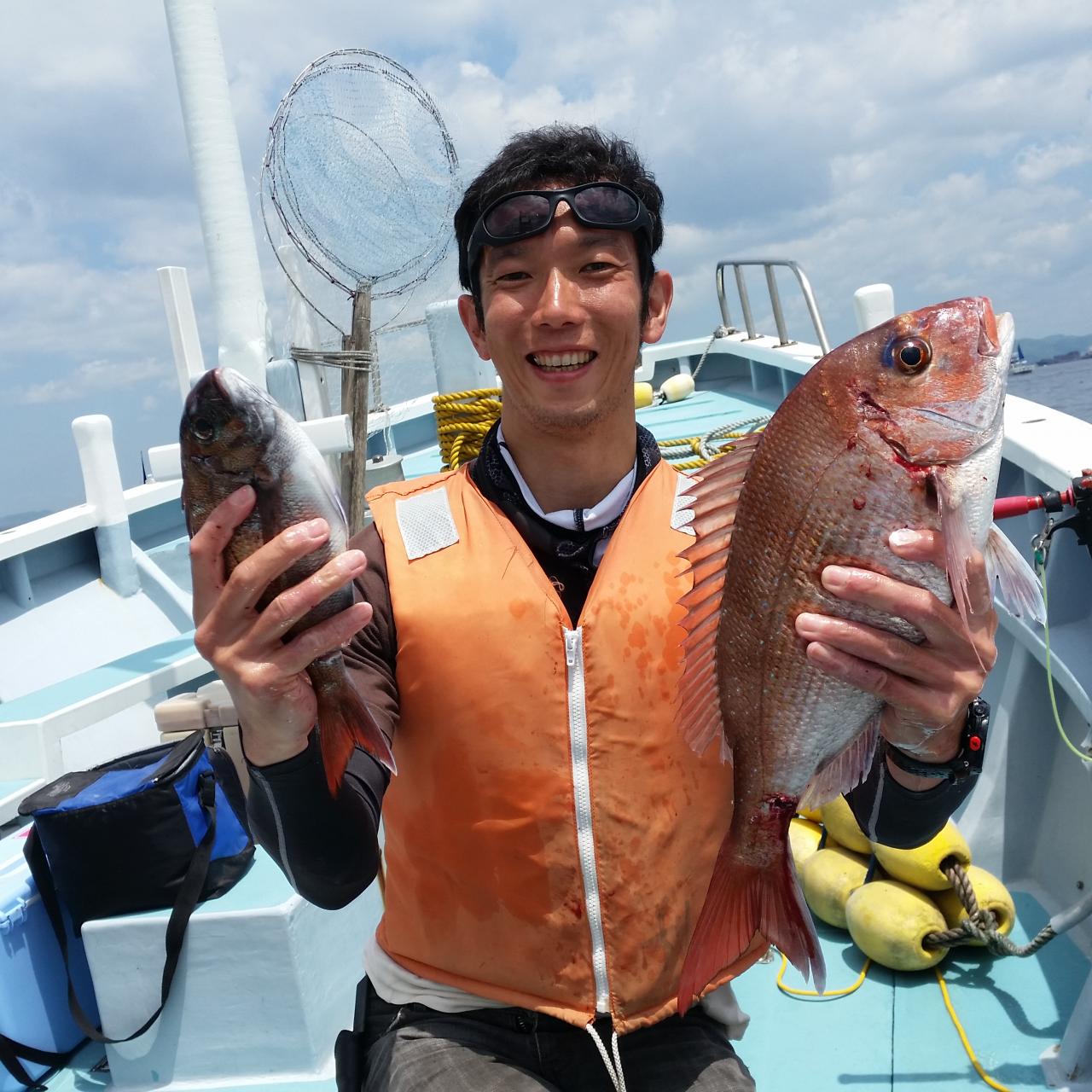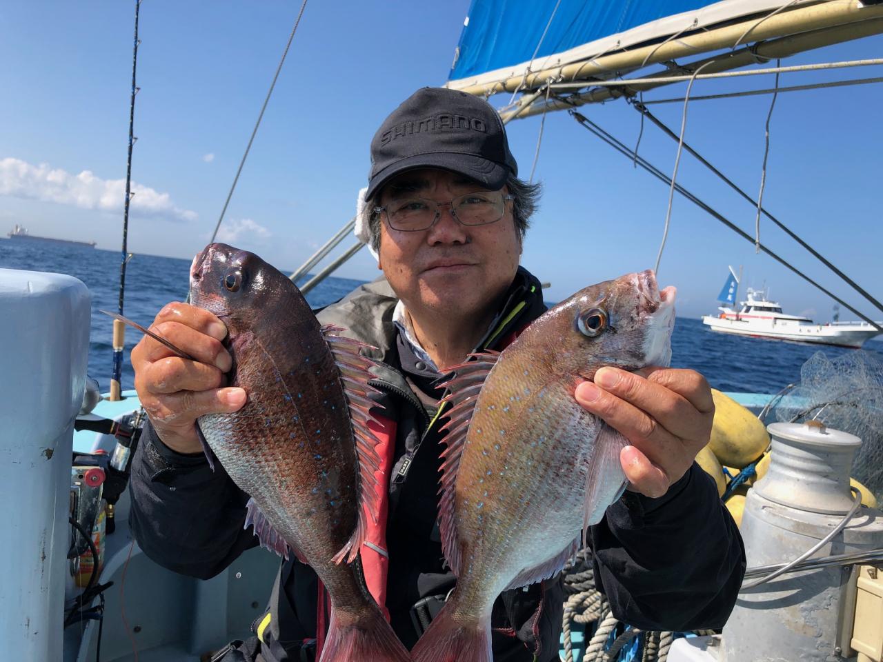 今日は真鯛五目に出船、真鯛全員ゲット、黒鯛、メジナ交じる。今日はどうもありがとうございました。iPhoneから送信