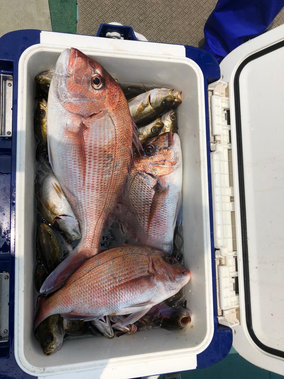 本日はイサキと真鯛のリレー皆さん朝一イサキ好調でお土産になって良かったです。頑張ってくれてありがとうございます。iPhoneから送信