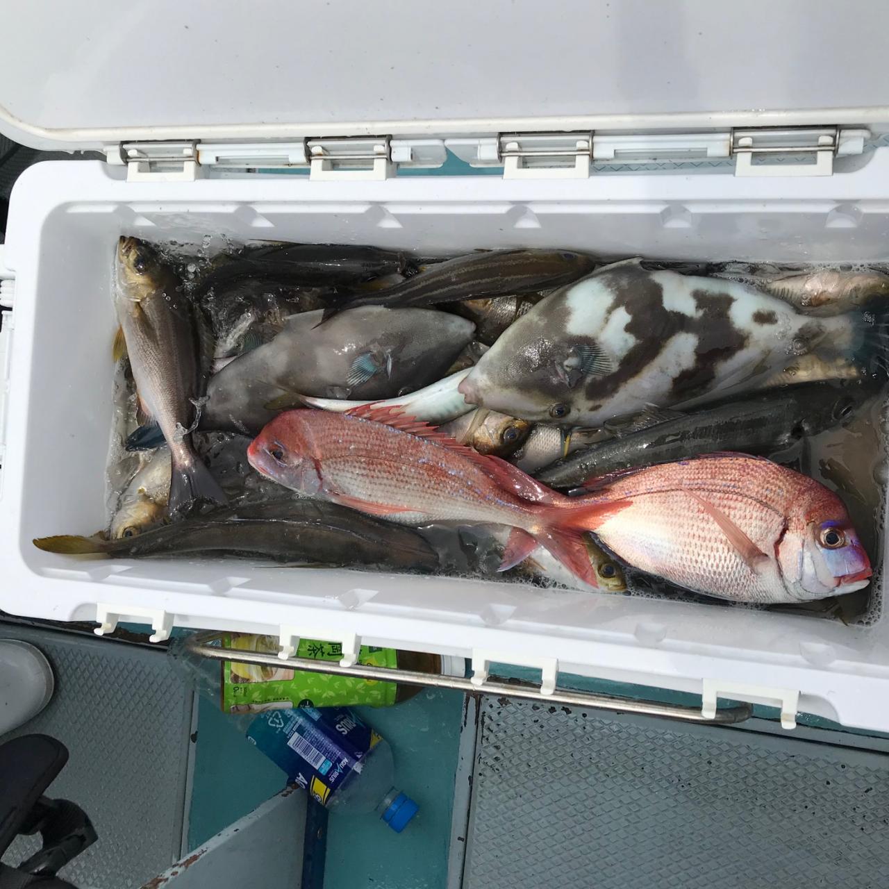 イサキ、ハナダイのリレー釣り、ハナダイに鯵、ウマヅラハギ交じる。今日はどうもありがとうございます。iPhoneから送信