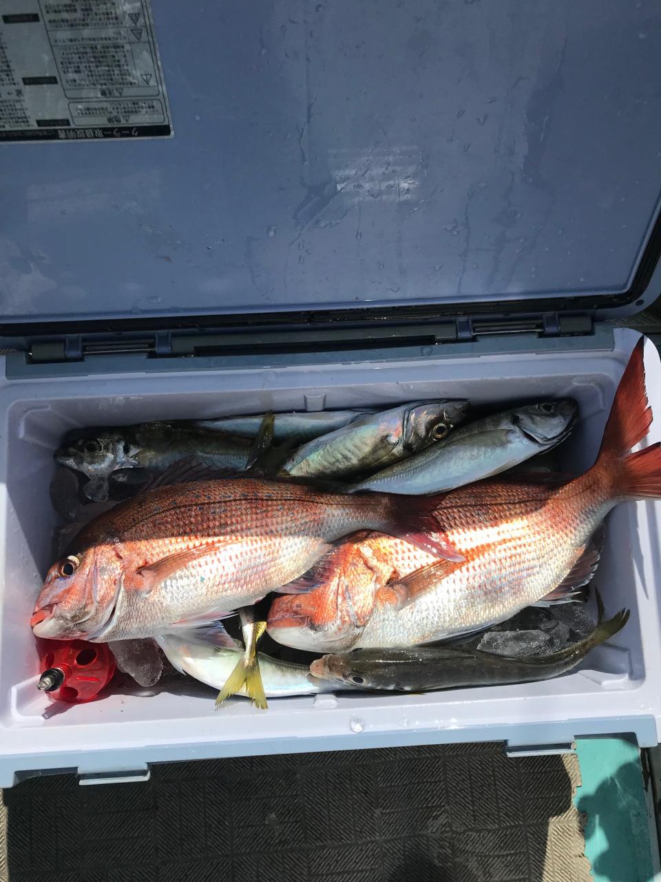 真鯛、鯵のリレー釣り、真鯛全員ゲット、鯵喰い活発。今日はどうもありがとうございます。iPhoneから送信