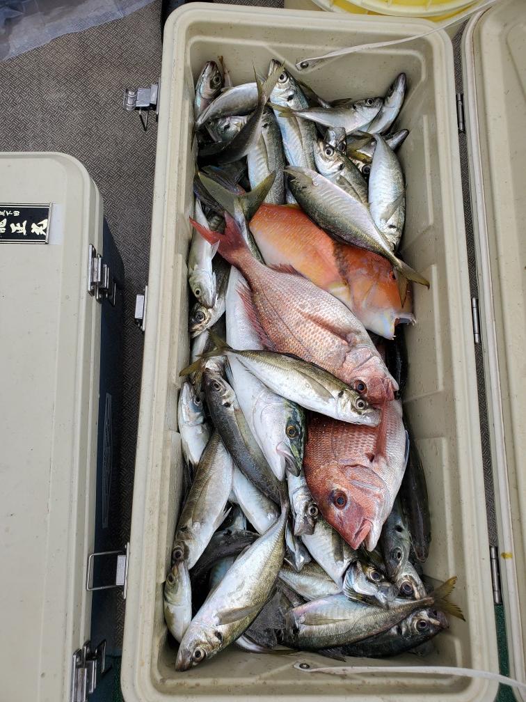 真鯛、鯵のリレー釣り、真鯛トップ7枚、イナダ交じる。鯵良型交じる。今日はどうもありがとうございます。iPhoneから送信