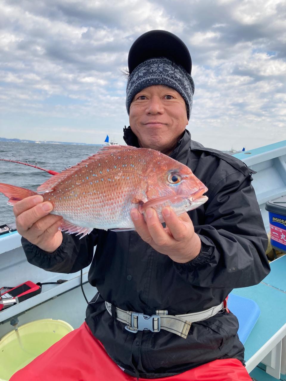 真鯛全員ゲット、3Kg真鯛ゲットiPhoneから送信