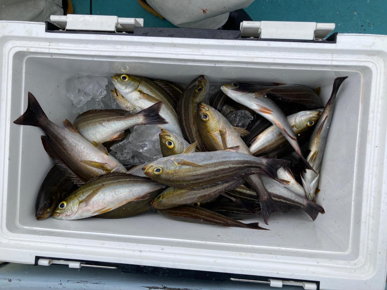 イサキと真鯛五目のリレーイサキ朝一好調でお土産になって良かったです。今日はお疲れ様でした。iPhoneから送信