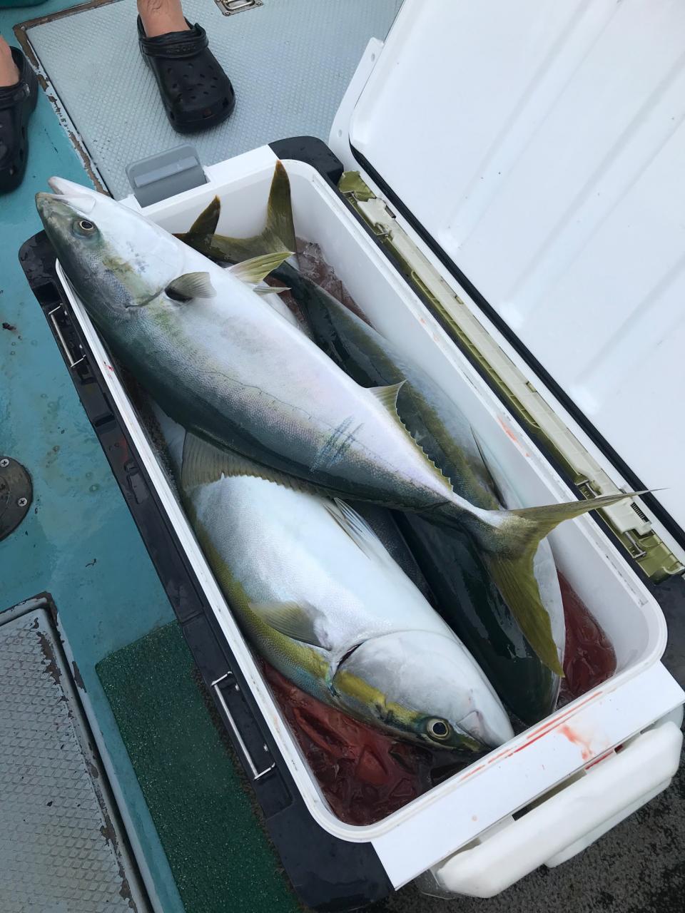 ワラサ喰い活発。クーラー満杯で9時早上がり、今日はどうも ありがとうございます