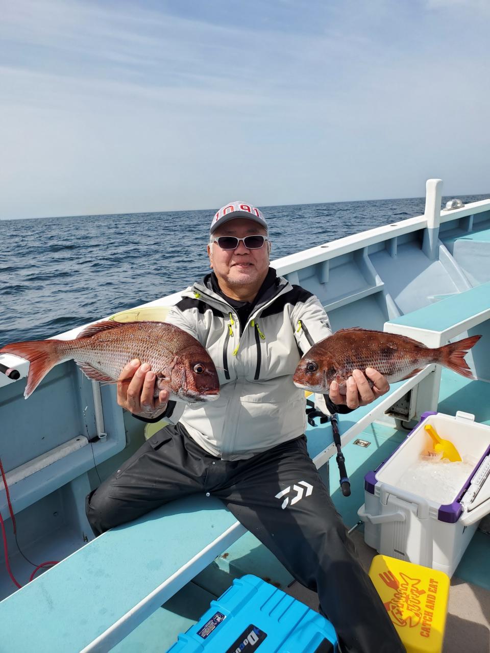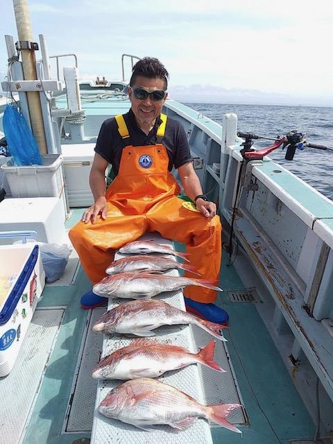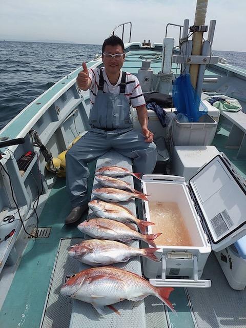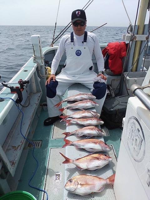 本日は真鯛好調でお土産になって良かったです。難しい中頑張ってくれてありがとう御座います。又宜しくお願いします。iPhoneから送信