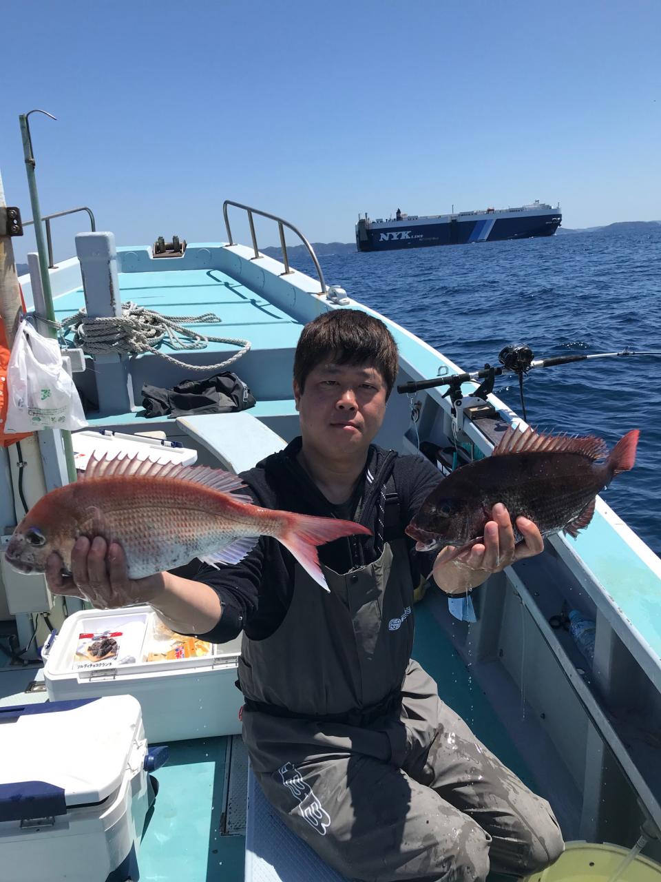 朝一真鯛全員ゲット