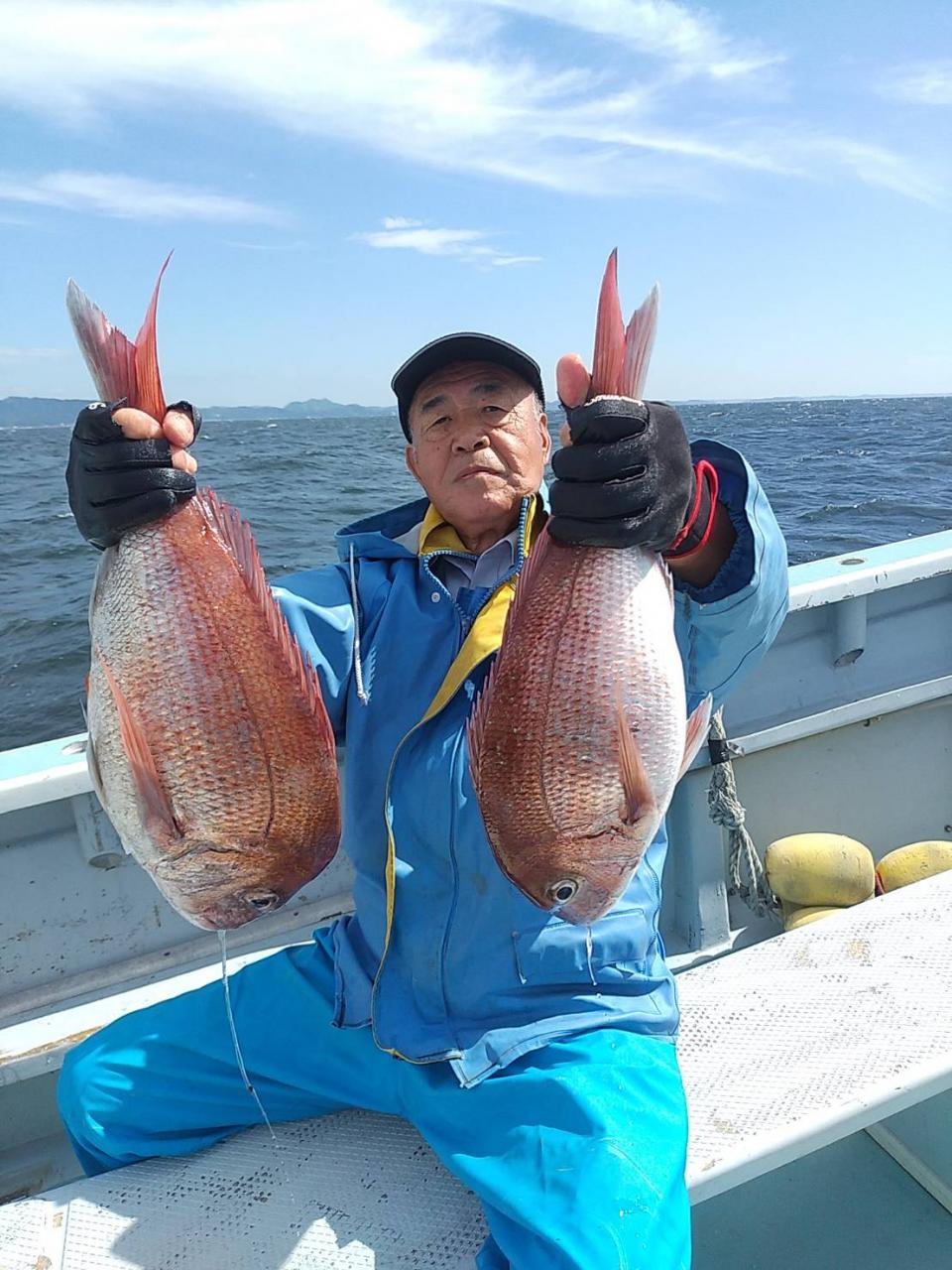朝一ワラサ&タイ全員ゲット