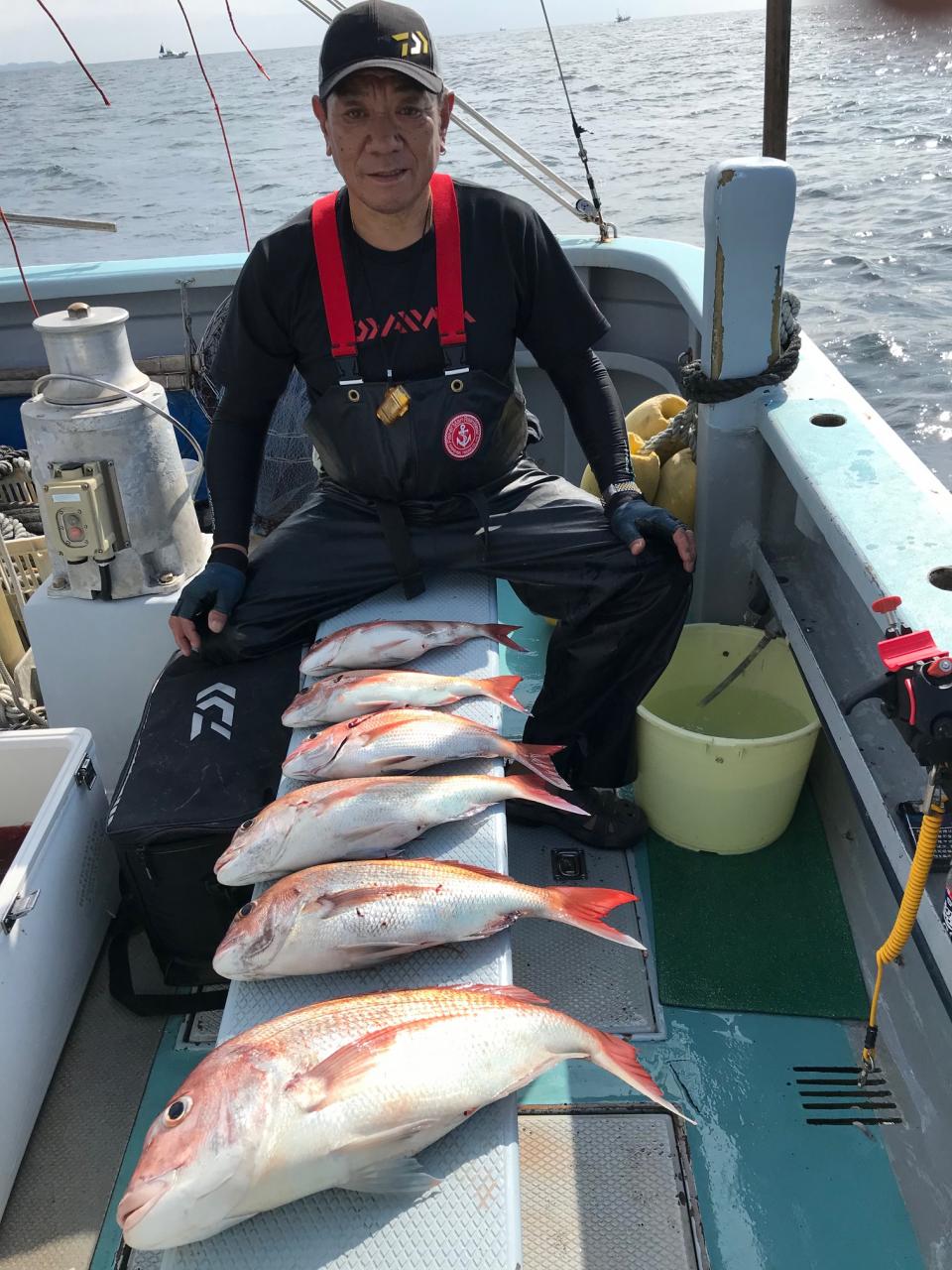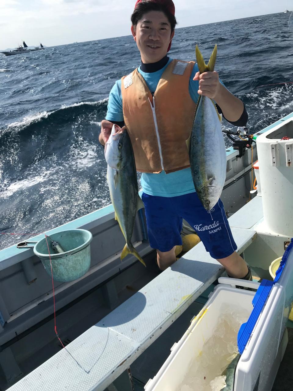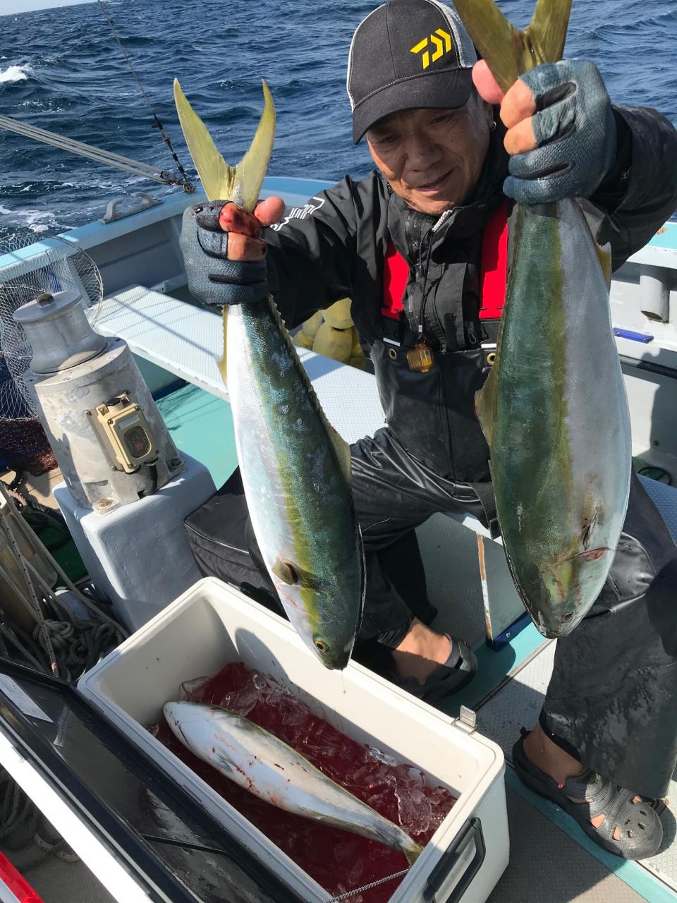ワラサ、真鯛のリレー釣りワラサ三隻全員ゲット朝喰い活発、ワラサトップ5本、真鯛トップ6枚カイワリ交じる。みなさん今日はどうもありがとうございます。iPhoneから送信