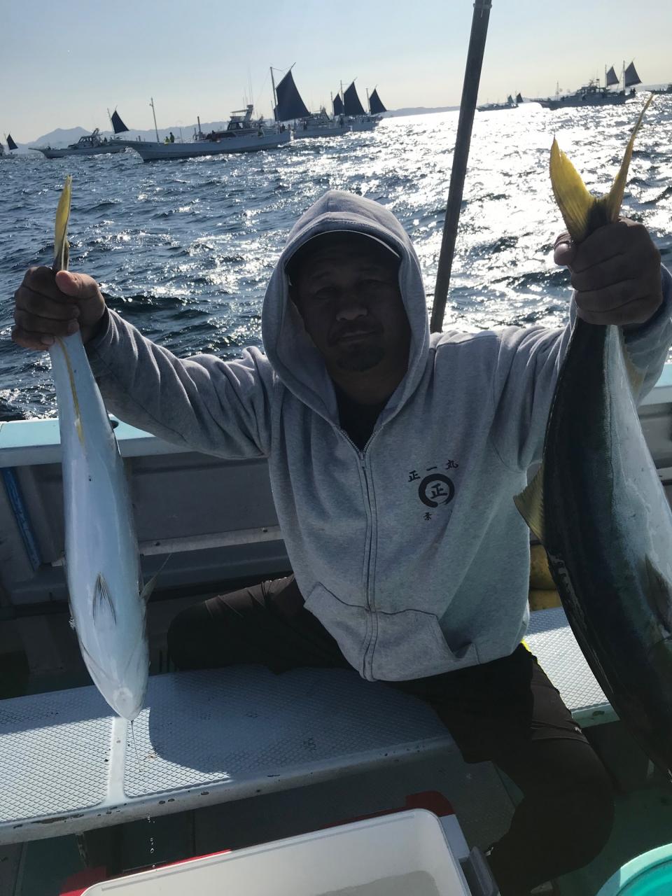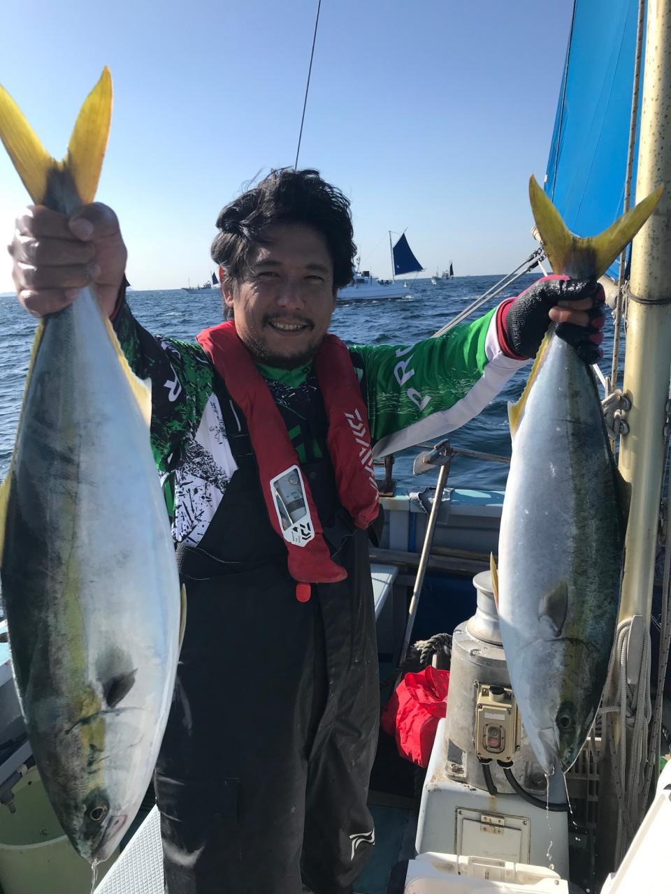 本日はワラサと真鯛のリレーワラサと真鯛が釣れて良かったね。難しい中頑張ってくれてありがとう御座います。今日はお疲れ様でした。iPhoneから送信