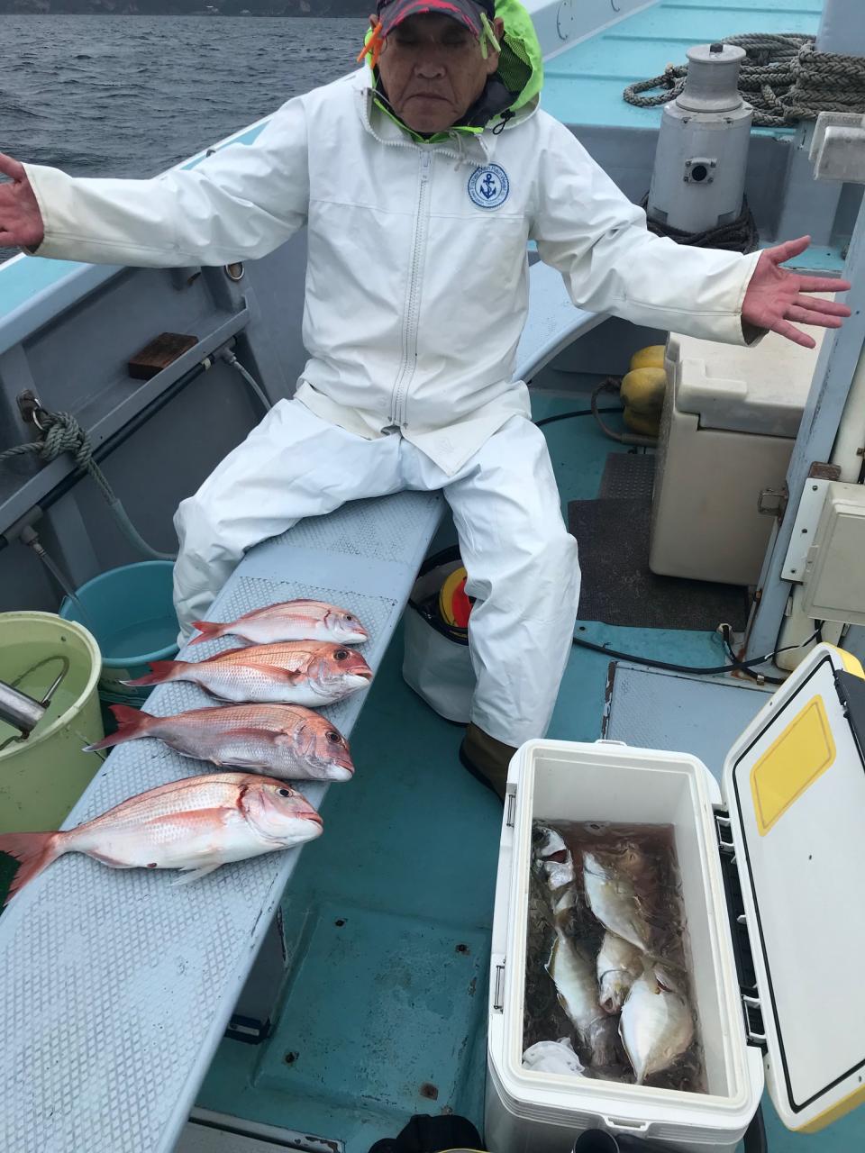 真鯛五目にハナダイ、カイワリ、イナワラ、イナダ、ウマズラハギ交じる。みなさん今日はどうもありがとうございました。iPhoneから送信