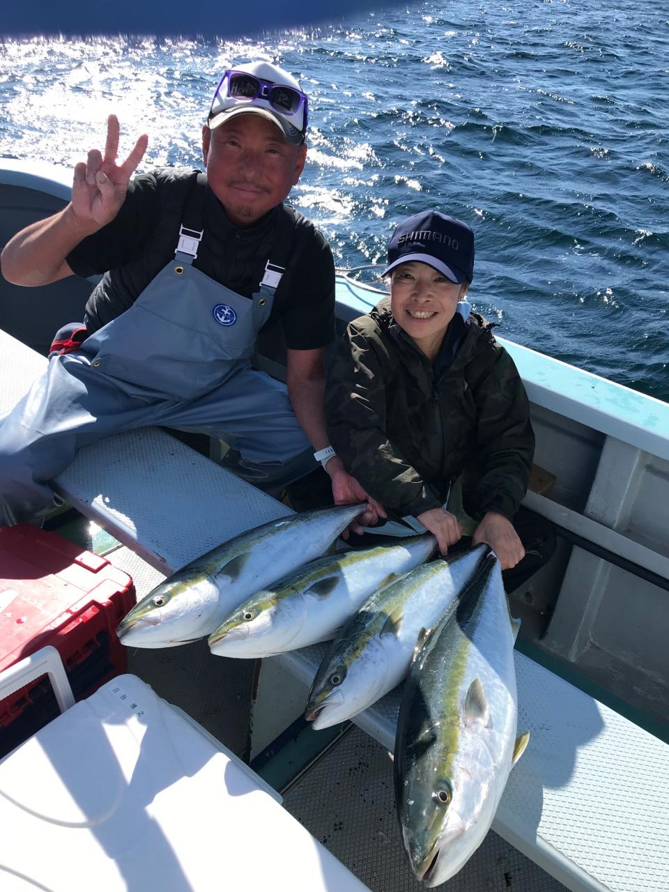 本日はワラサに出船今日は貸竿の皆さん頑張ってくれて有難うございました。ワラサ5本GET出来良かったです。今日はお疲れ様でした。iPhoneから送信