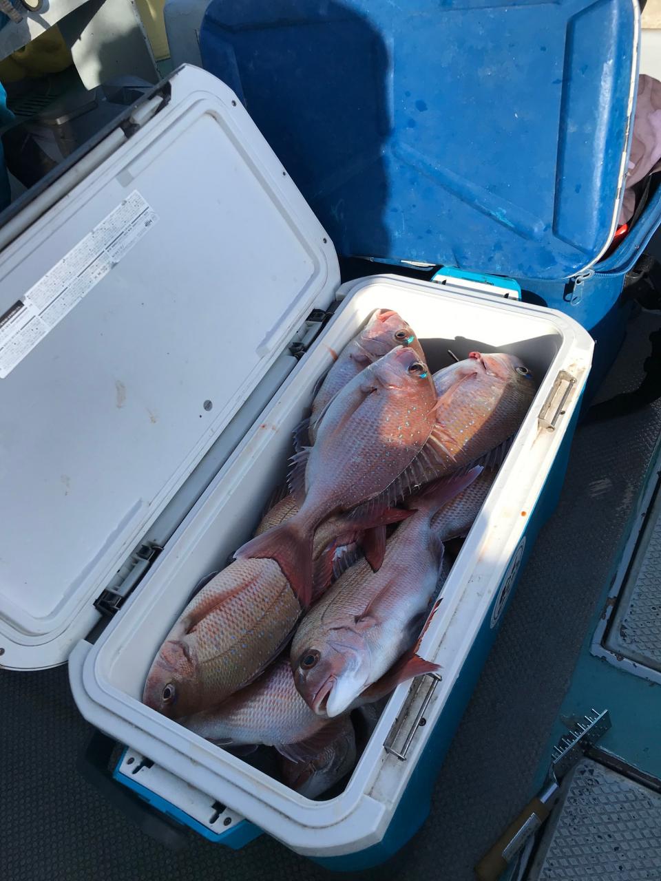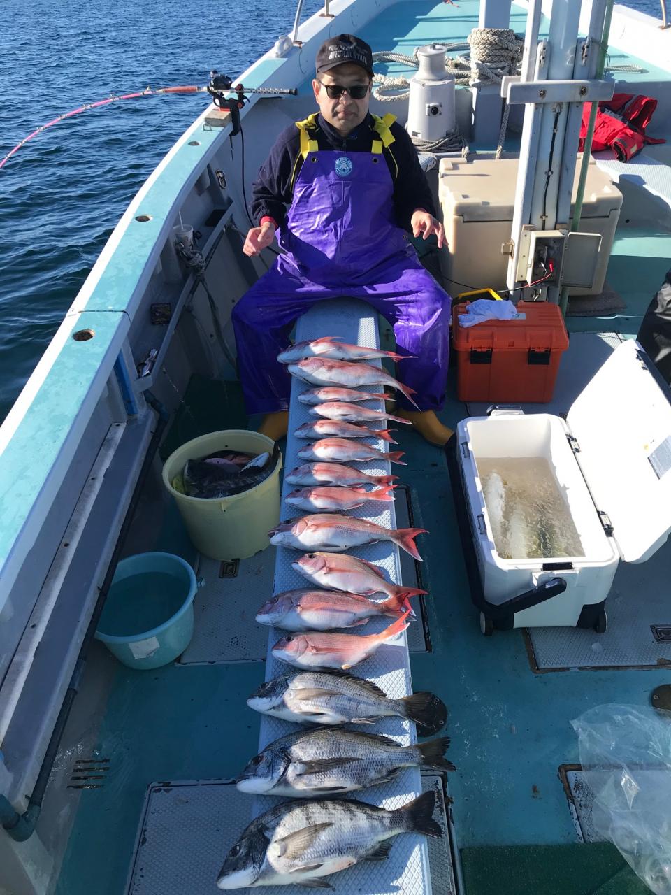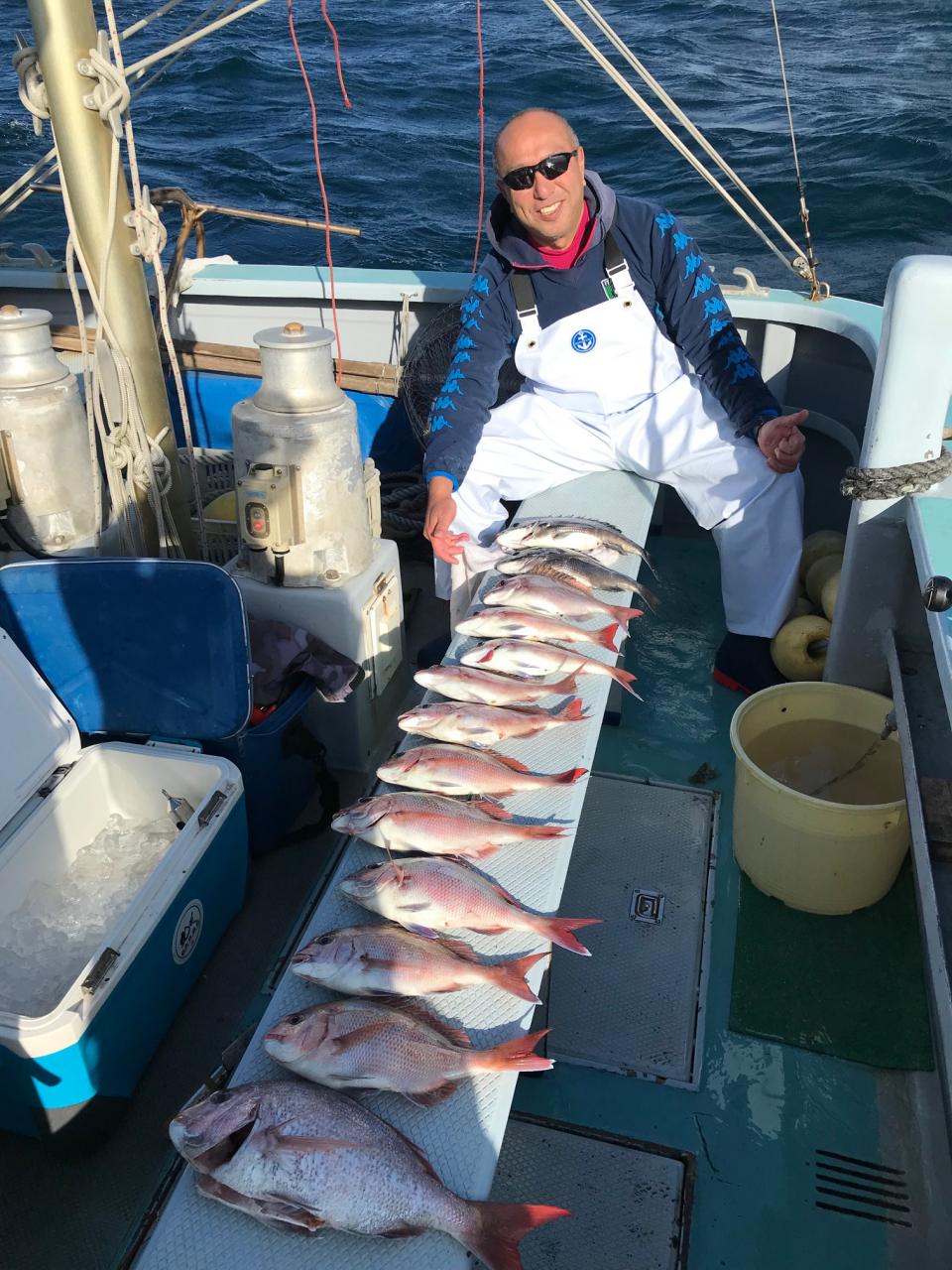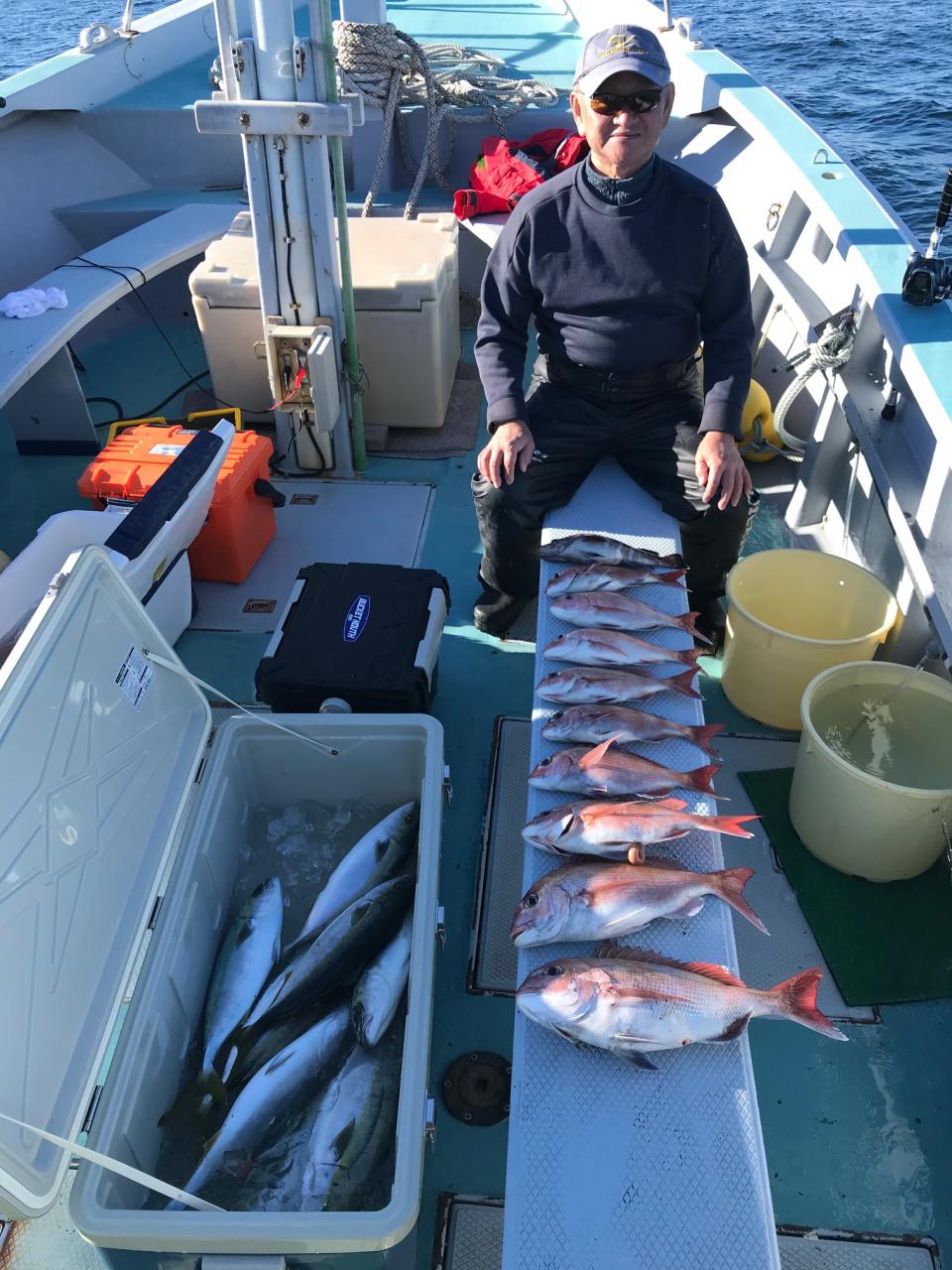 真鯛全員ゲット、トップ12枚黒鯛、イナダ、マハタ交じる。みなさん今日はどうもありがとうございました。iPhoneから送信