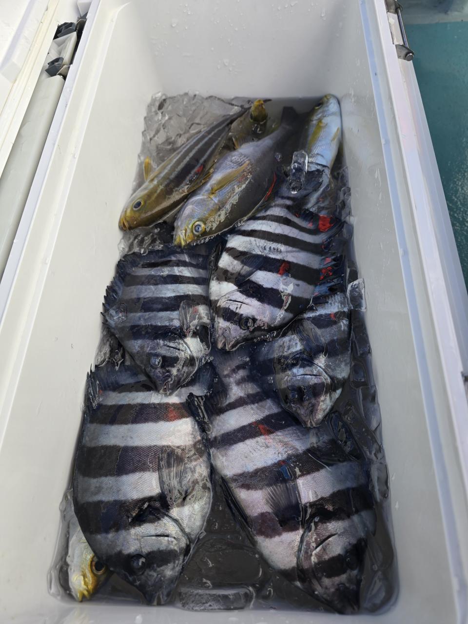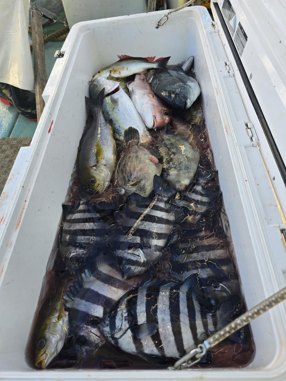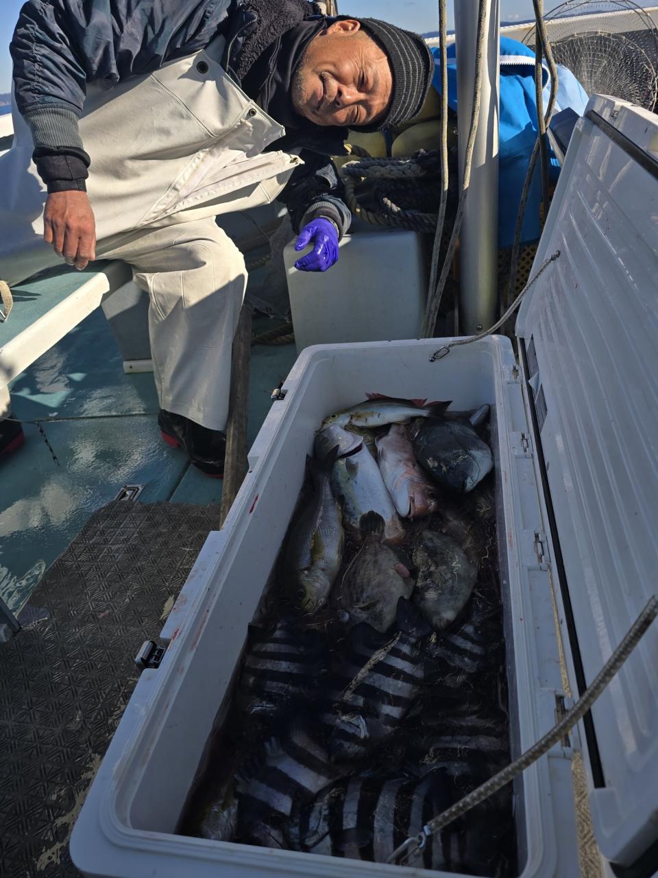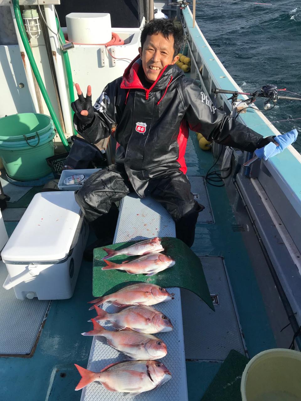 真鯛全員ゲット、トップ12枚黒鯛、イナダ、マハタ交じる。みなさん今日はどうもありがとうございました。iPhoneから送信