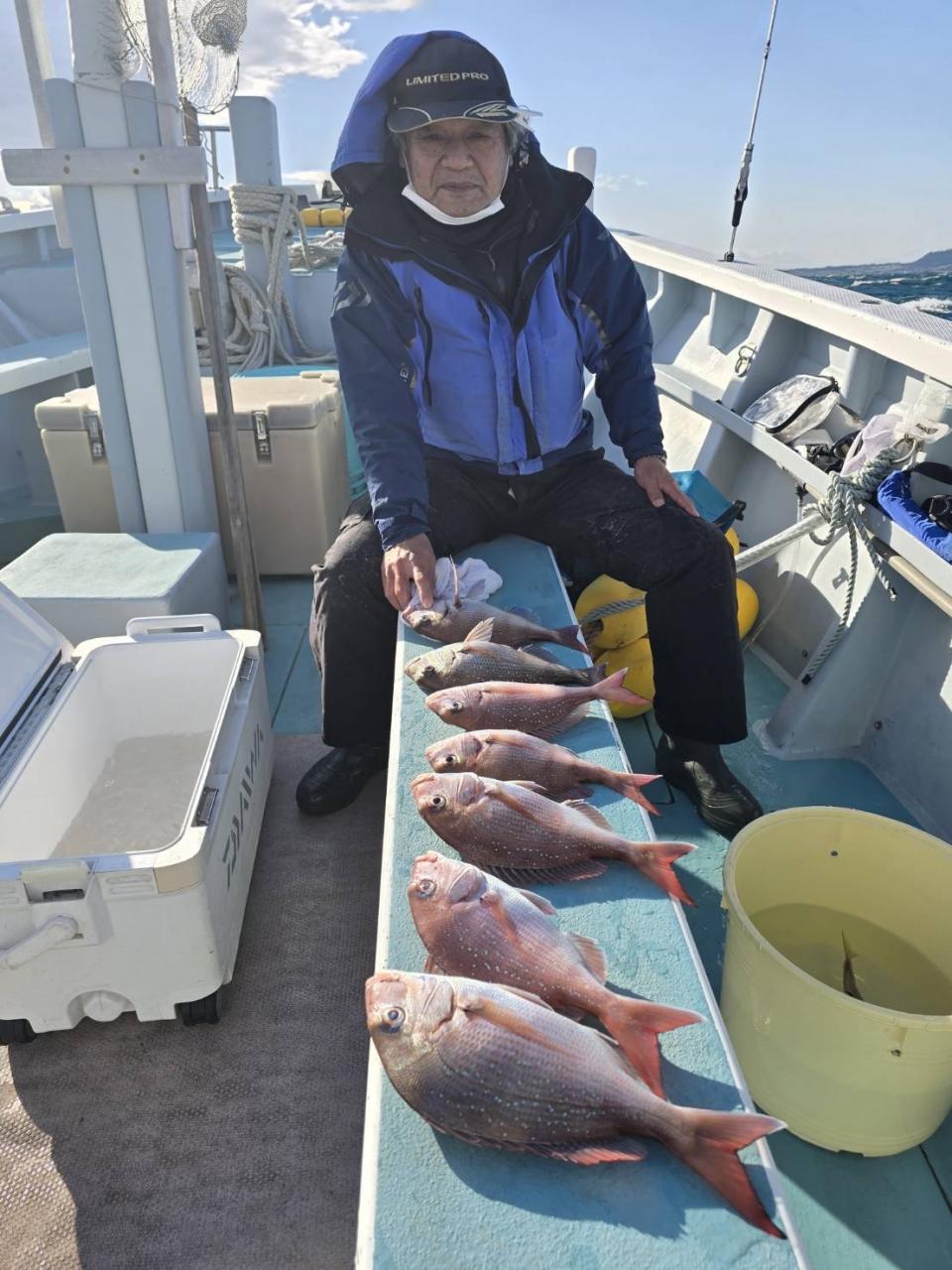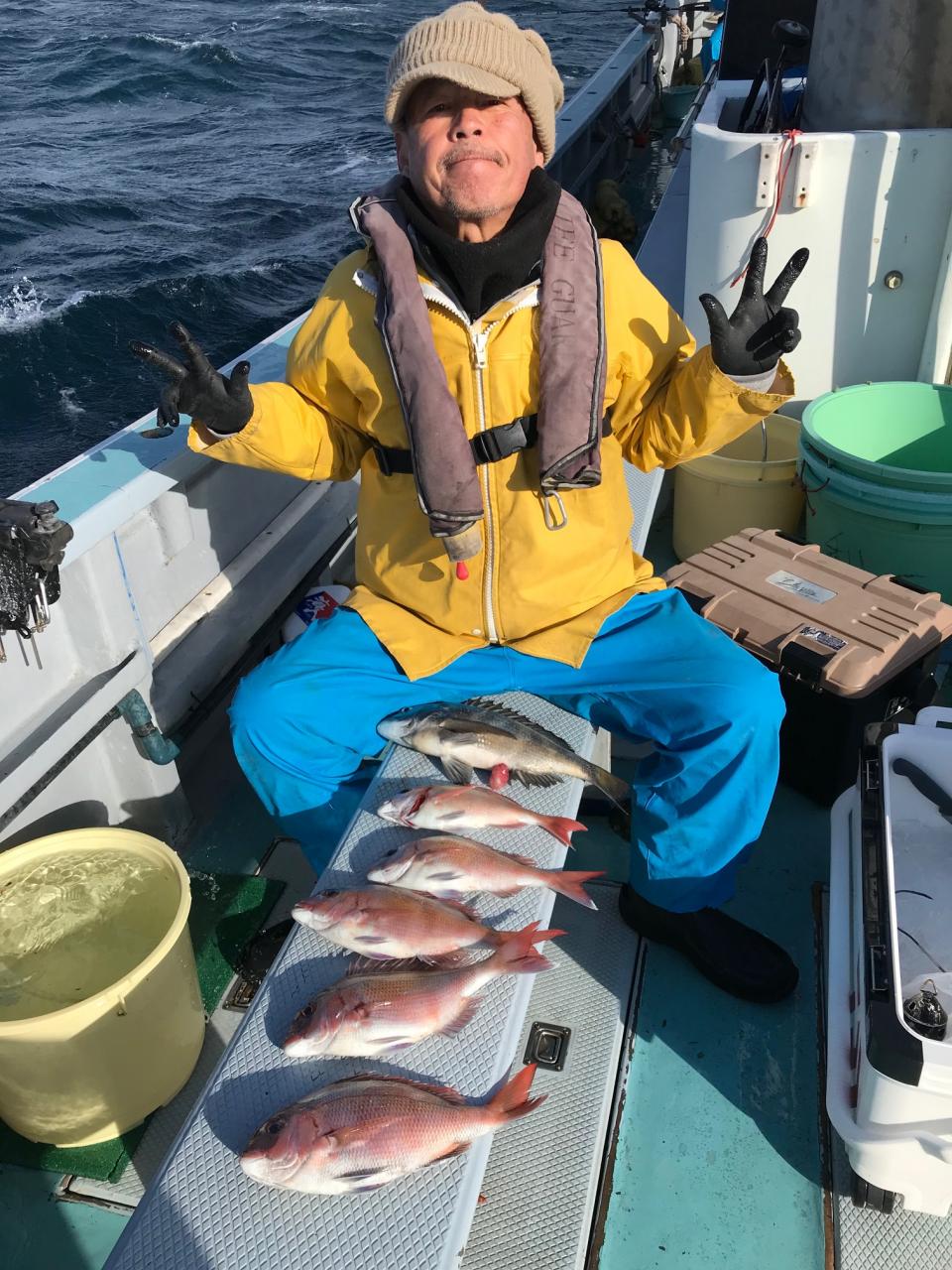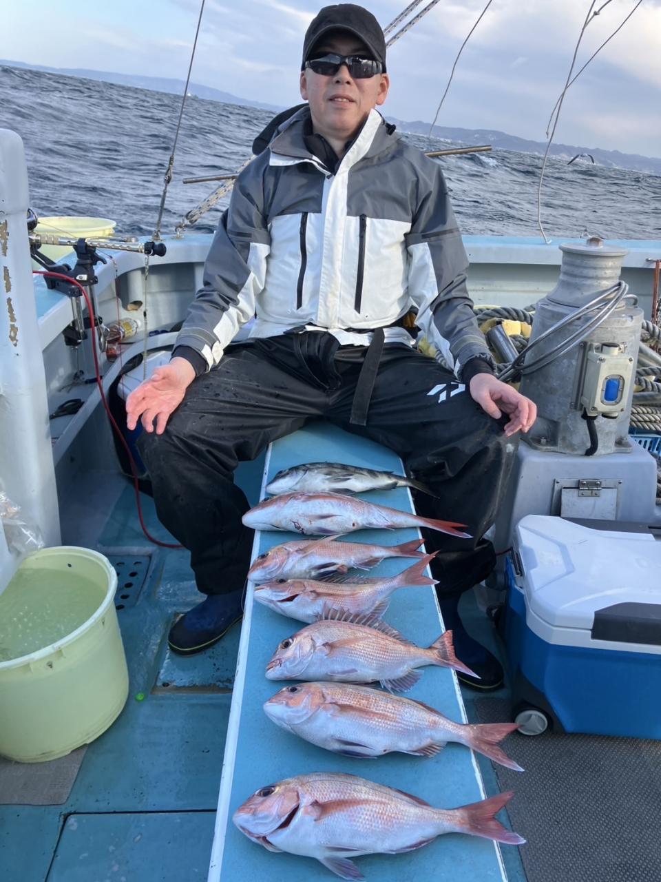 今日は真鯛五目で出船真鯛 黒鯛 石鯛 イナダ交じり釣れ良かったです。皆さん頑張ってくれてありがとう御座います。又宜しくお願いします。iPhoneから送信