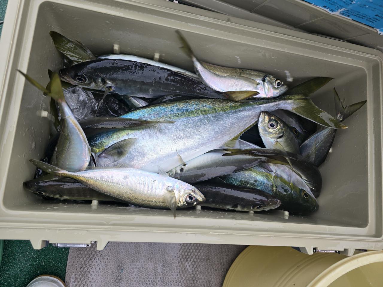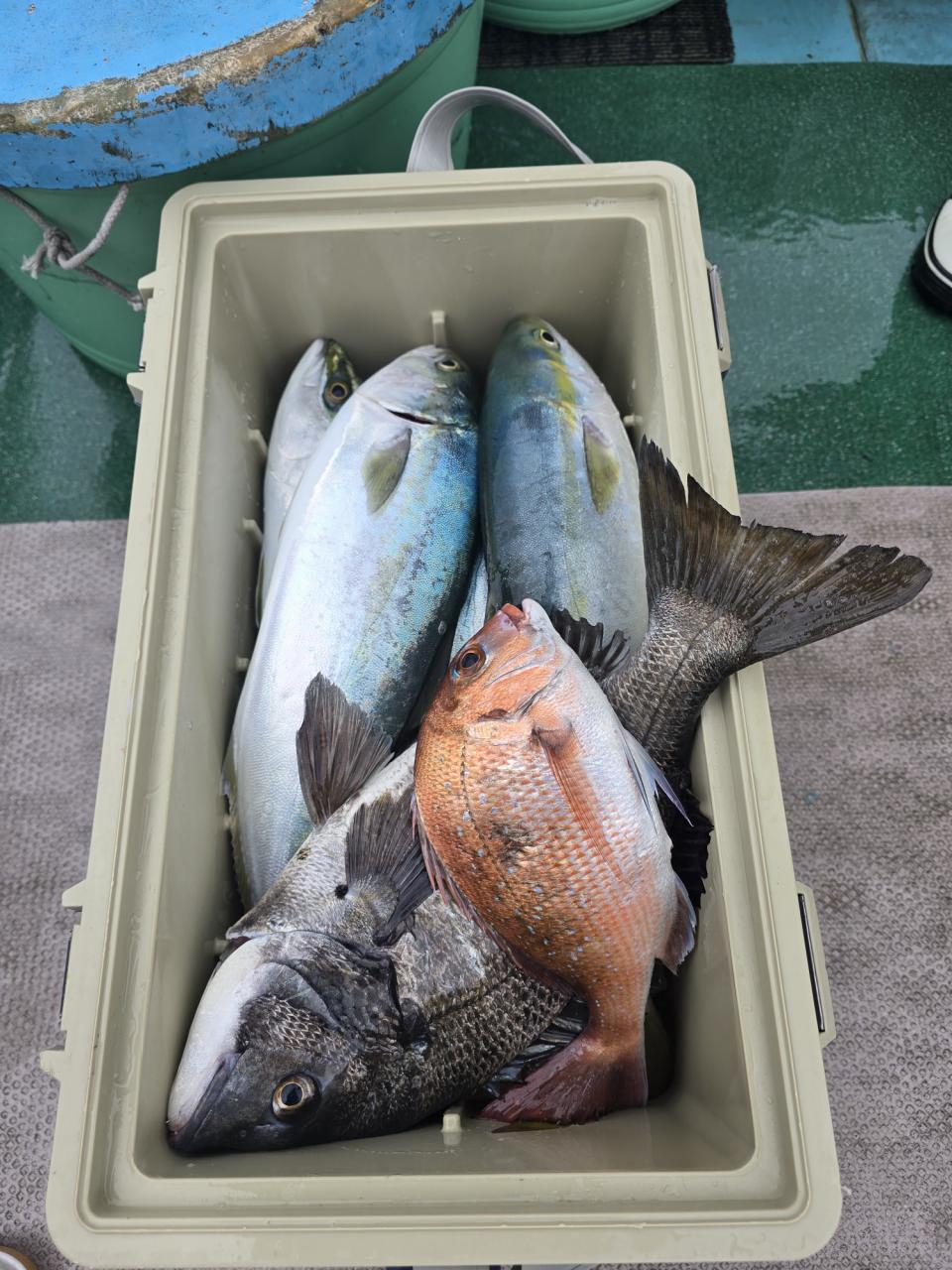 イナダ全員ゲットその他タイ、クロダイ、アジ、サバなど釣れました