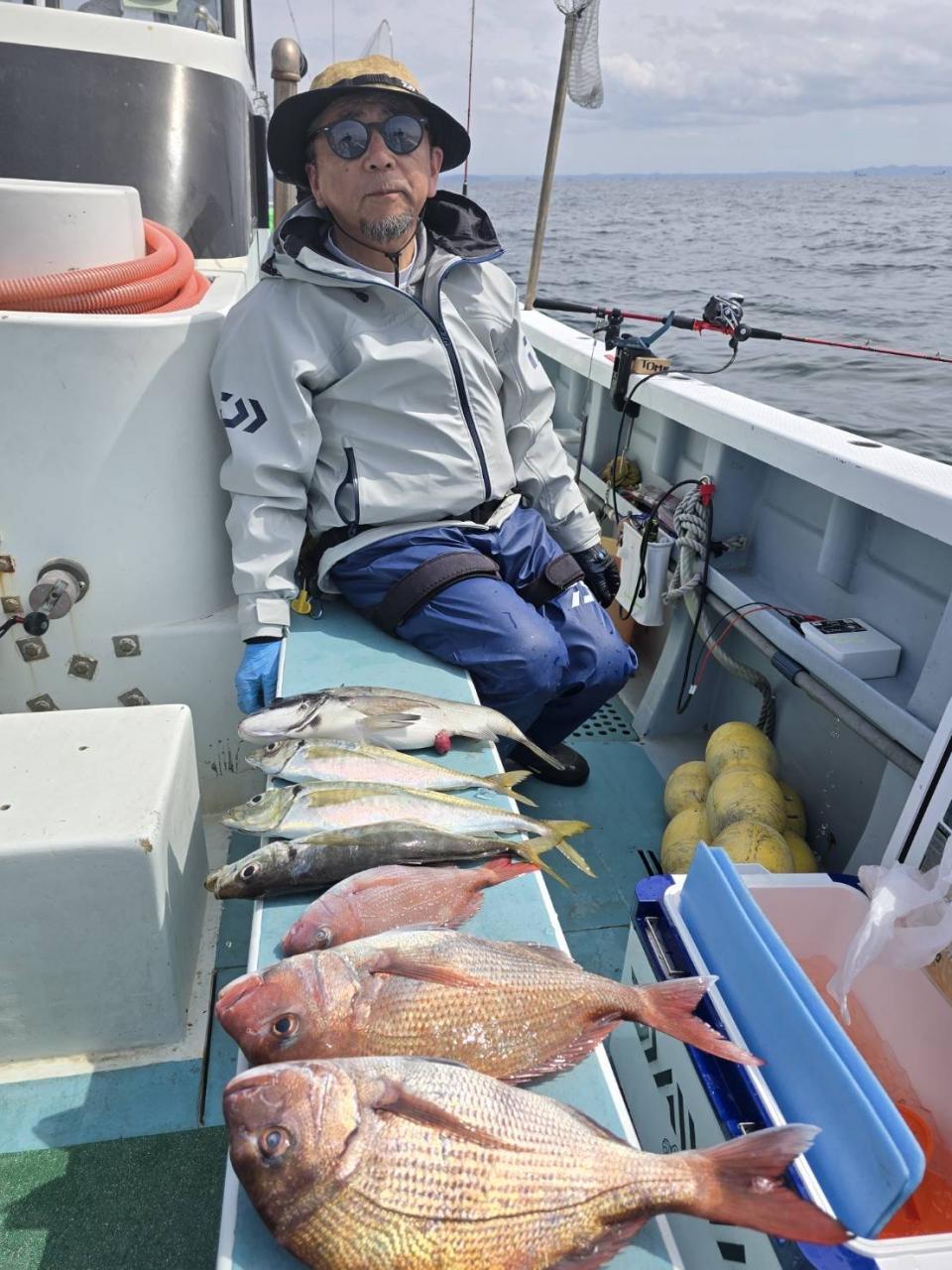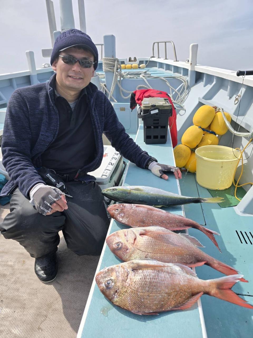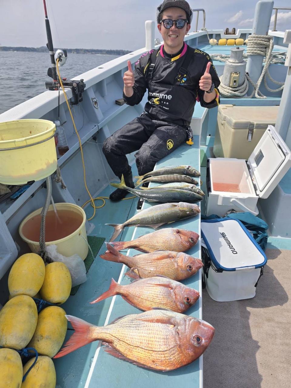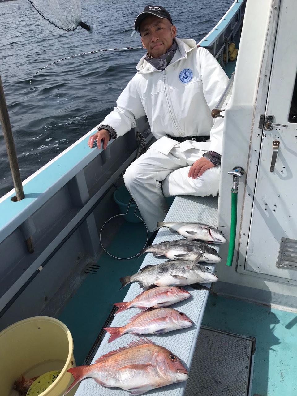 真鯛一隻全員ゲット、トップ4枚黒鯛、鯵、イナダ交じる。みなさん今日はどうもありがとうございました。iPhoneから送信