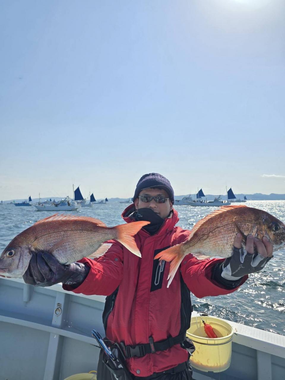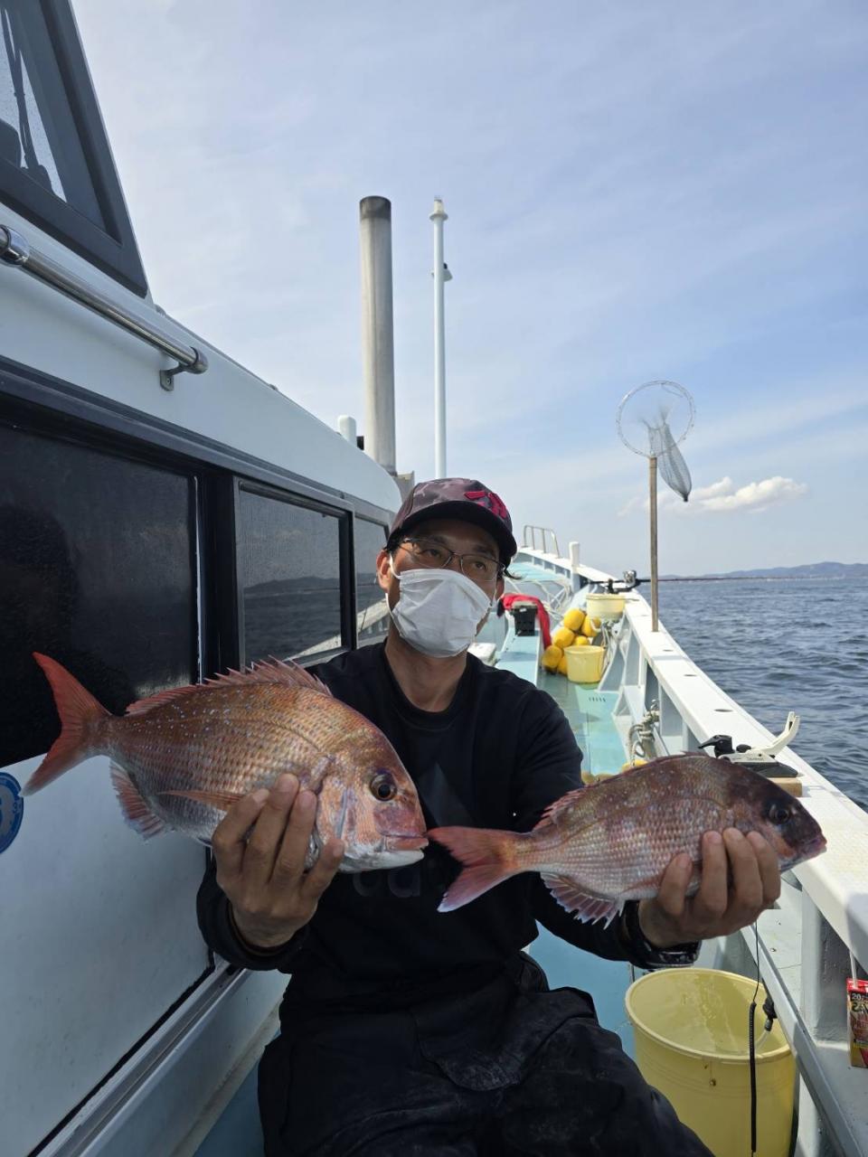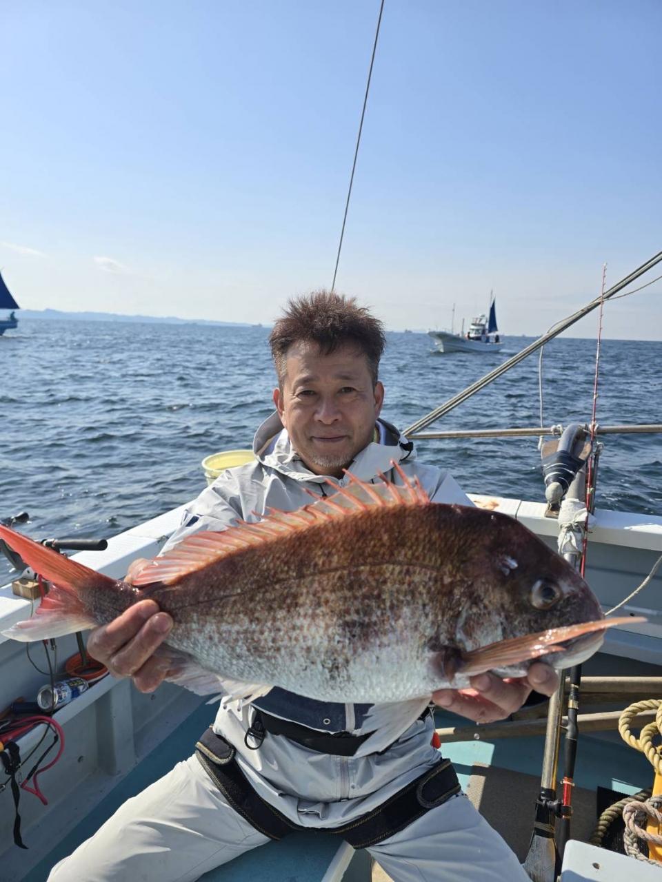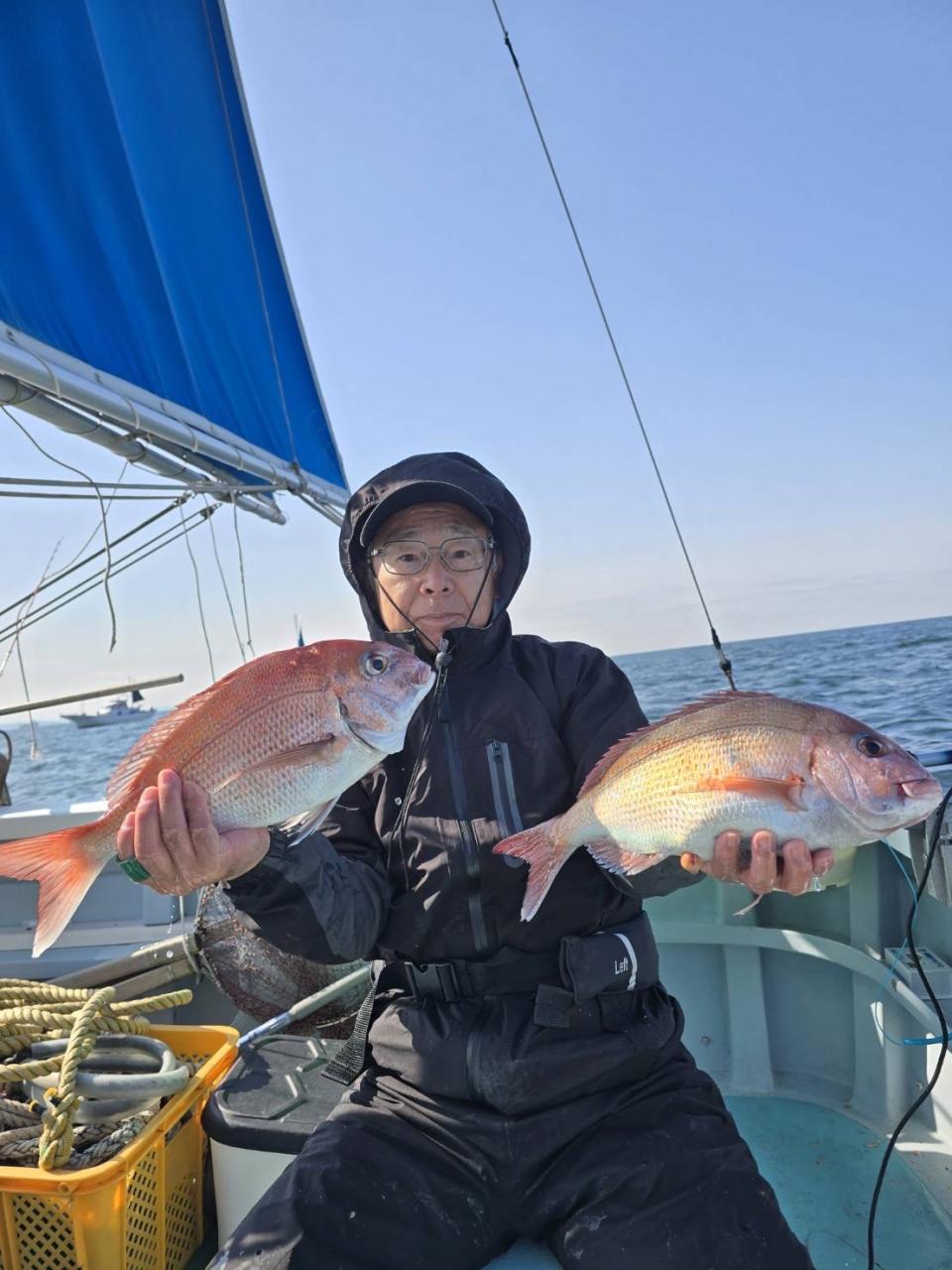 真鯛一隻全員ゲット、トップ4枚黒鯛、鯵、イナダ交じる。みなさん今日はどうもありがとうございました。iPhoneから送信