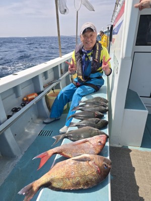真鯛五目に真鯛、石鯛、黒鯛、大鯵、イサキ、ウマズラハギ交じる。みなさん今日はどうもありがとうございました。iPhoneから送信
