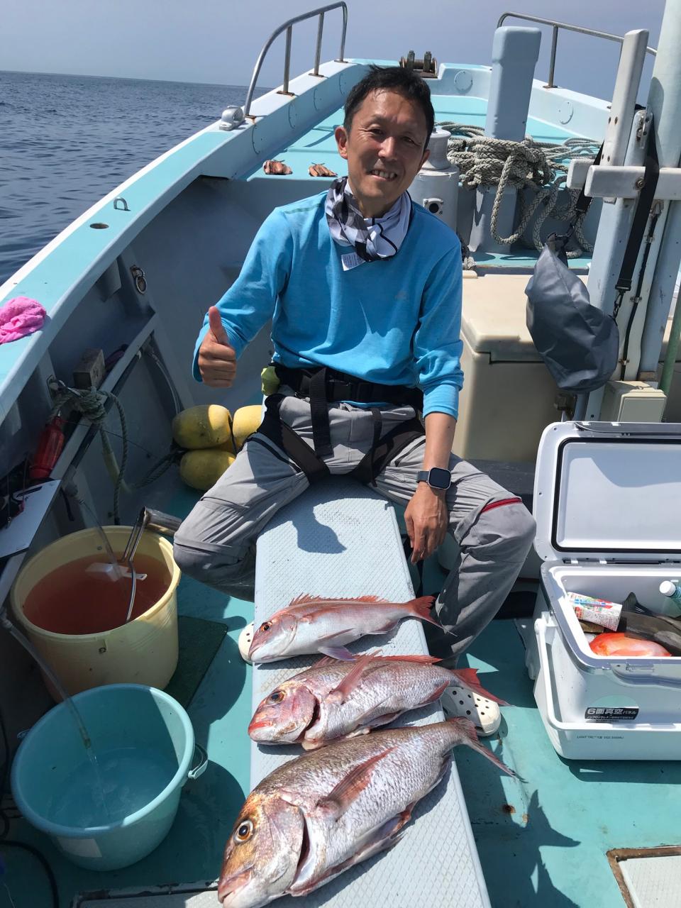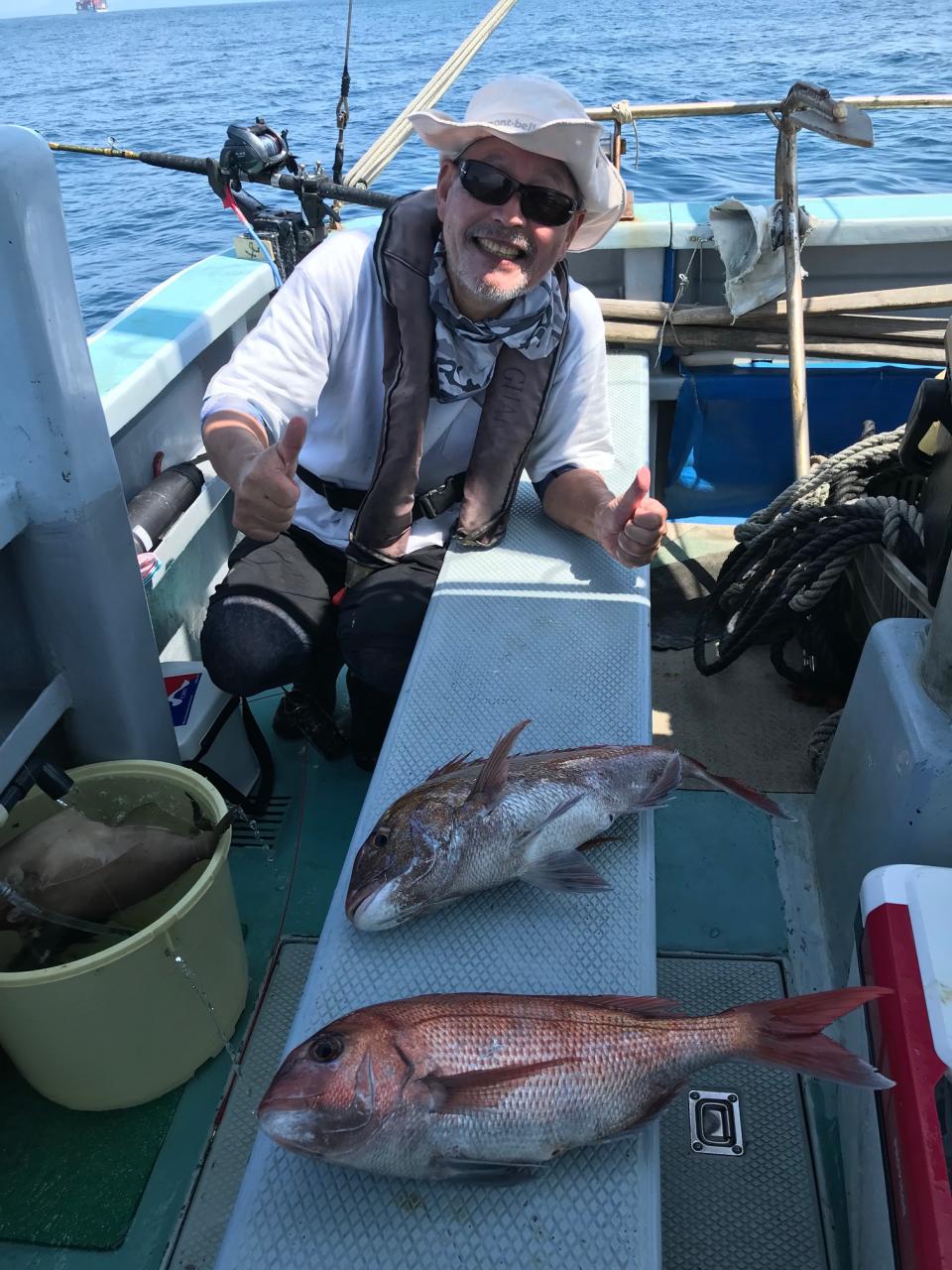 沖ノ瀬の真鯛釣りトップ3枚ほとんどキロオーバーウマズラハギ、サバ、イサキ交じる。みなさん今日はどうもありがとうございました。iPhoneから送信