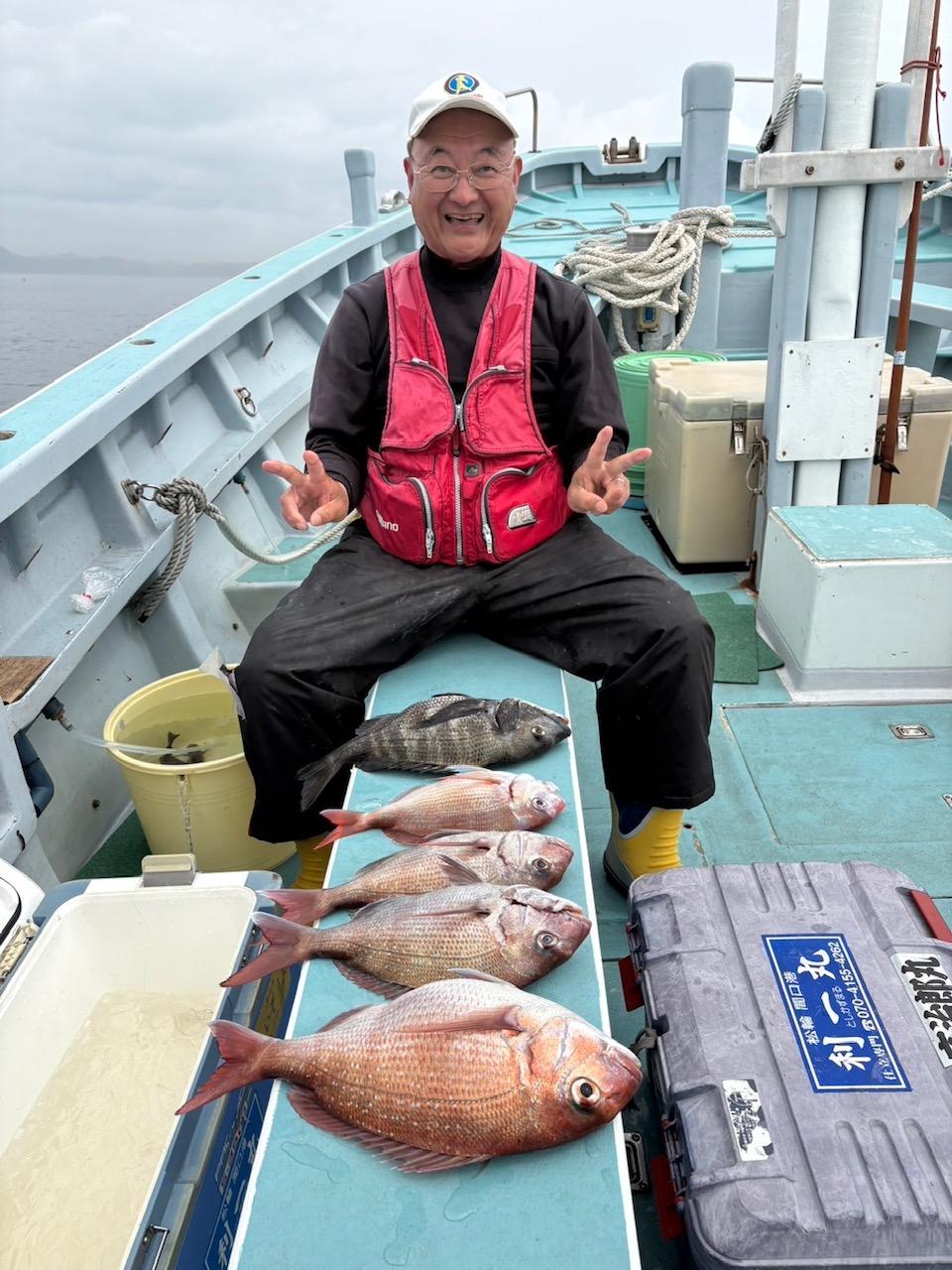 真鯛トップ4枚最大4.0Kg石鯛、黒鯛、イナダ、イサキ、メジナ交じる。みなさん今日はどうもありがとうございました。iPhoneから送信