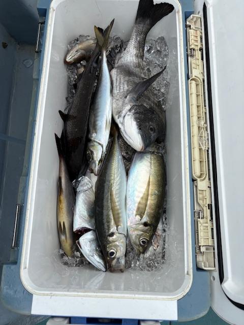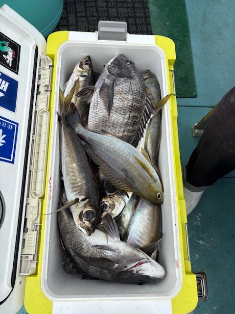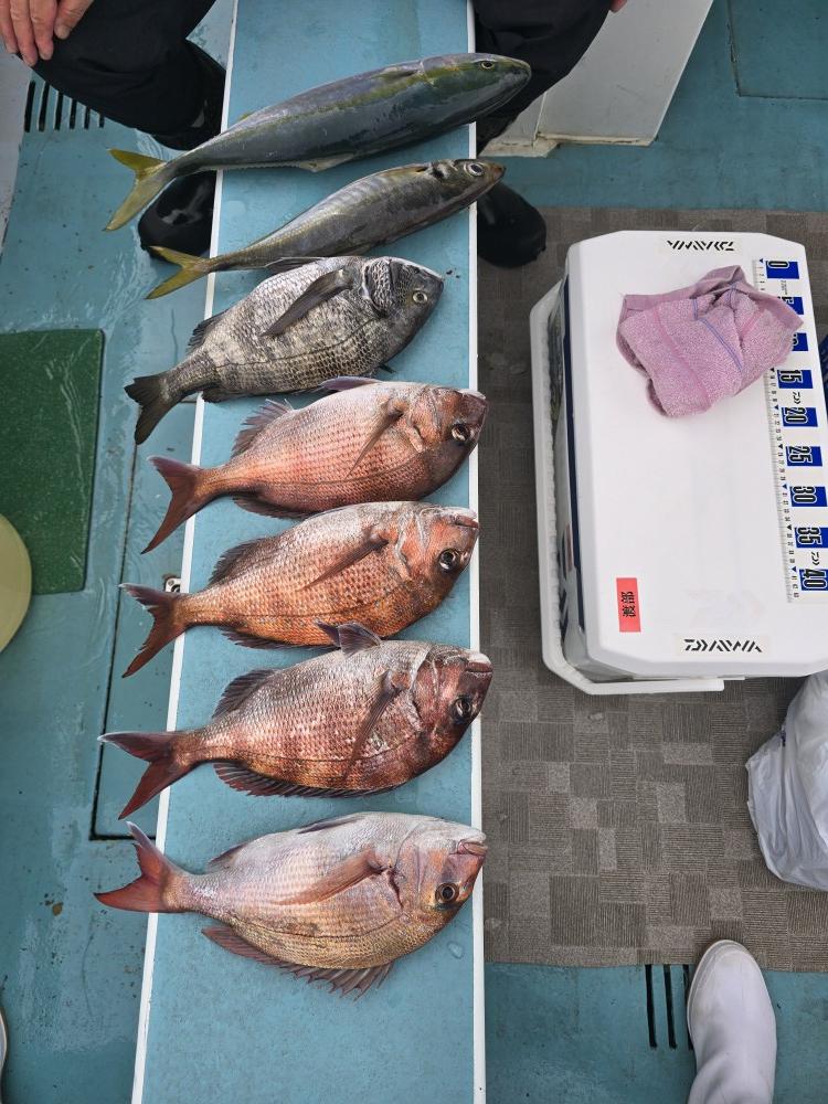 本日は五目釣りで出船真鯛 黒鯛 大鯵 イサキ 鯖 ウマズラ交じり釣れ良かったです。皆さんお疲れ様でした。iPhoneから送信