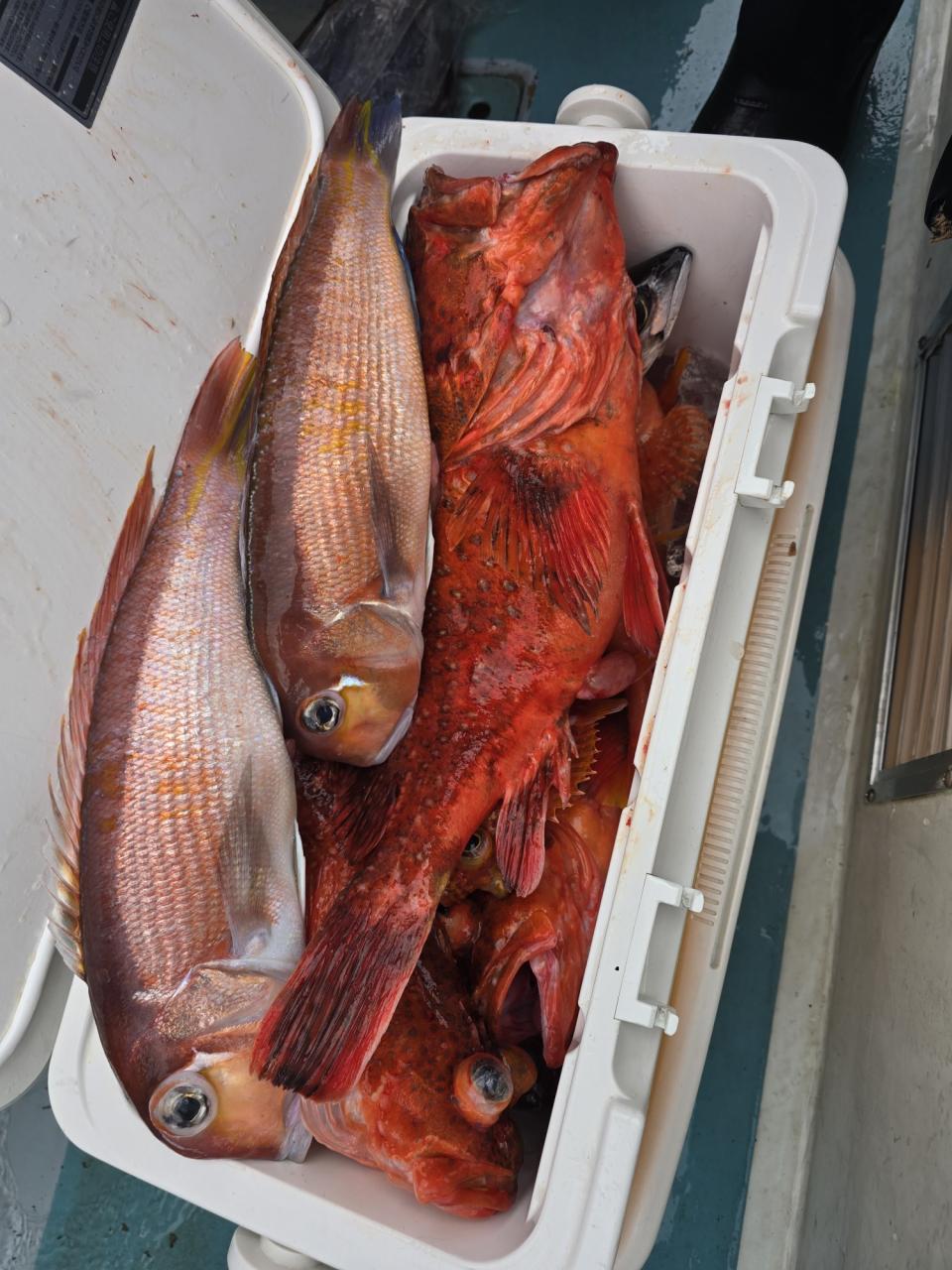カンコ全員ゲットその他オニカサゴ、ユメカサゴ、アマダイ、クロムツ、メダイなど釣れました